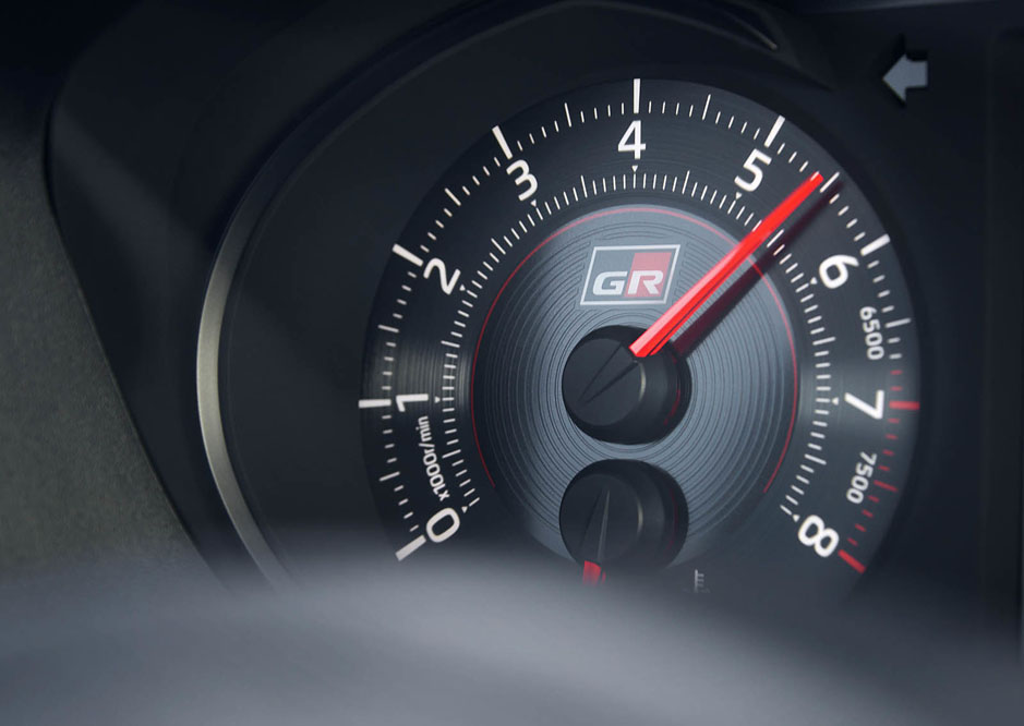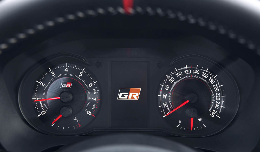 Abro la puerta y lo primero que me llama la atención son sus asientos semibacquet diseñados por Toyota Boshoku; combinan Ultrasuede en la parte central y Alcántara en los extremos. Acomodados en ellos observo su nuevo, pero no por ello desconocido, volante: es el del (prueba) Toyota GT-86. A diferencia del del coupé, adopta el logotipo de Toyota y una guía central en rojo. También su ajuste en profundidad es algo más escaso. Rápidamente encuentro una posición de conducción bastante buena, a pesar de la altura del asiento. Tampoco escapan a mis ojos el pedalier de aluminio y los grafismos del cuadro de instrumentos, ambos de nuevo cuño.