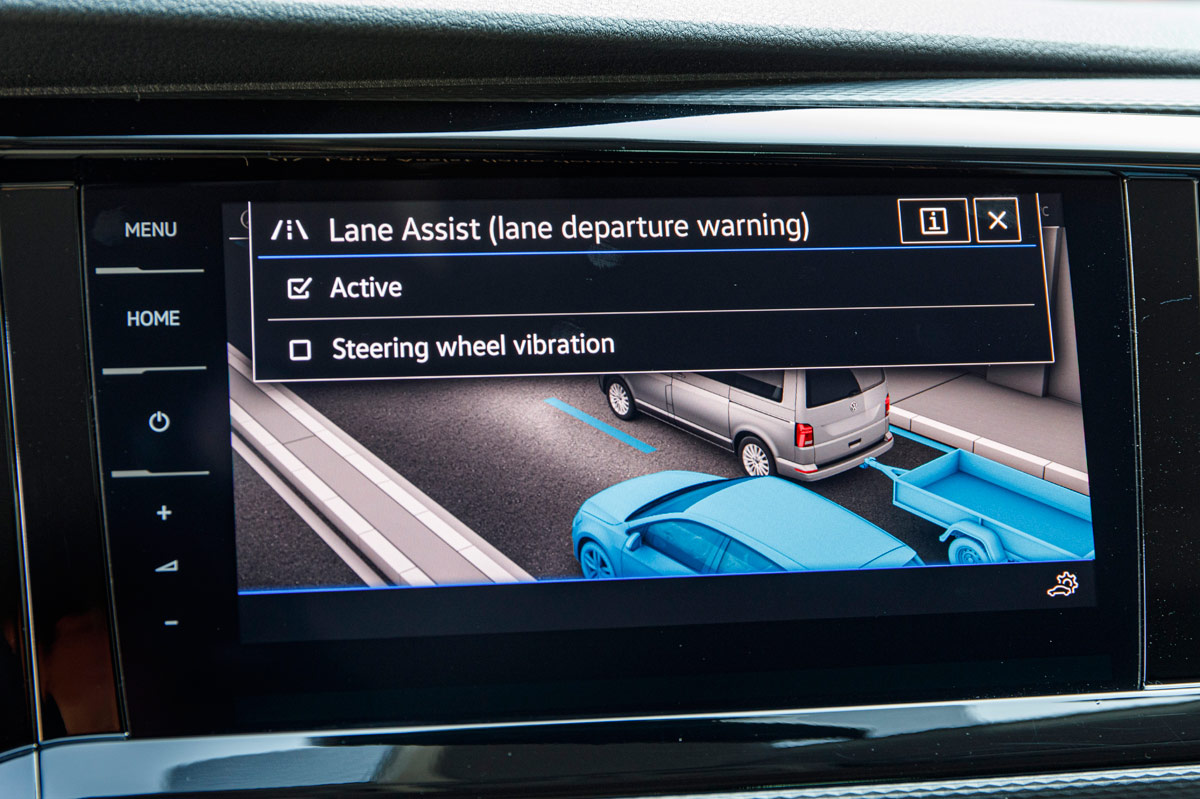 Otra de las novedades que equipa esta California T6.1 de la prueba es la dirección asistida electromecánica, que, debido a que hace un año que probé la de asistencia hidráulica, no he podido apreciar la diferencia. Lo que sí es un hecho es que gracias a esta servodirección puede adoptar nuevos asistentes a la conducción, como el mantenimiento de carril (Lane Assist), la ayuda al aparcamiento (Park Assist), el sistema que simplifica la maniobra con un remolque (Trailer Assist) y el Asistente Lateral, que estabiliza el vehículo automáticamente en caso de vientos fuertes y del que he probado su efectividad durante los dos días de levante que me ha fastidiado que me ha hecho modificar mis vacaciones en Cádiz.