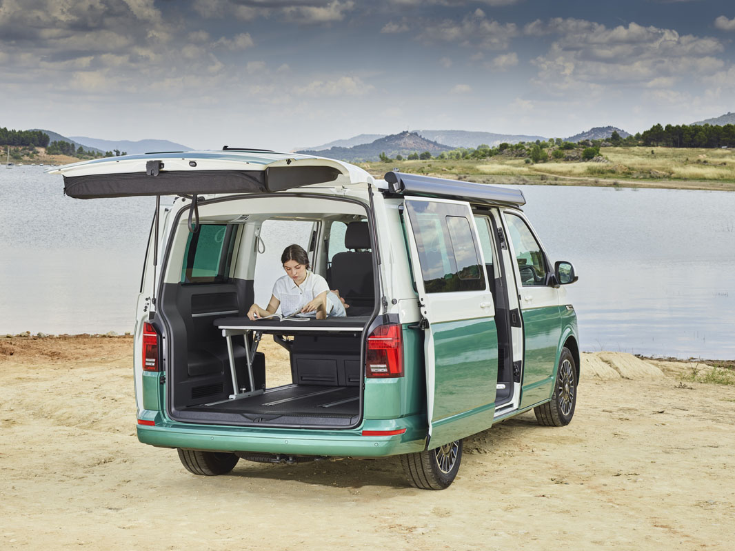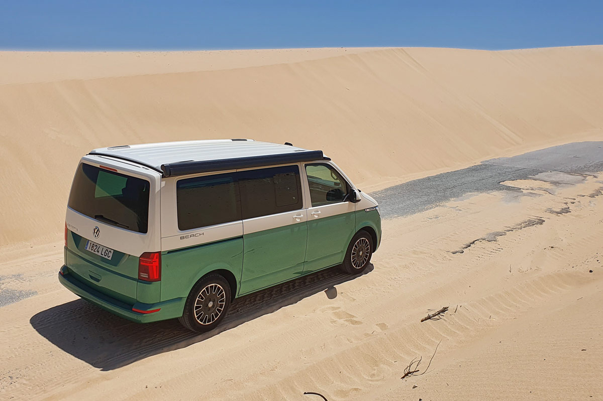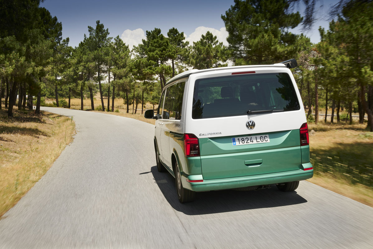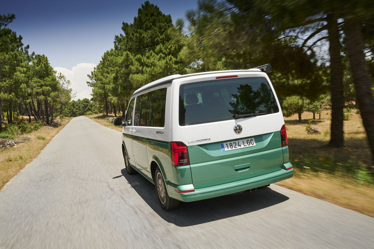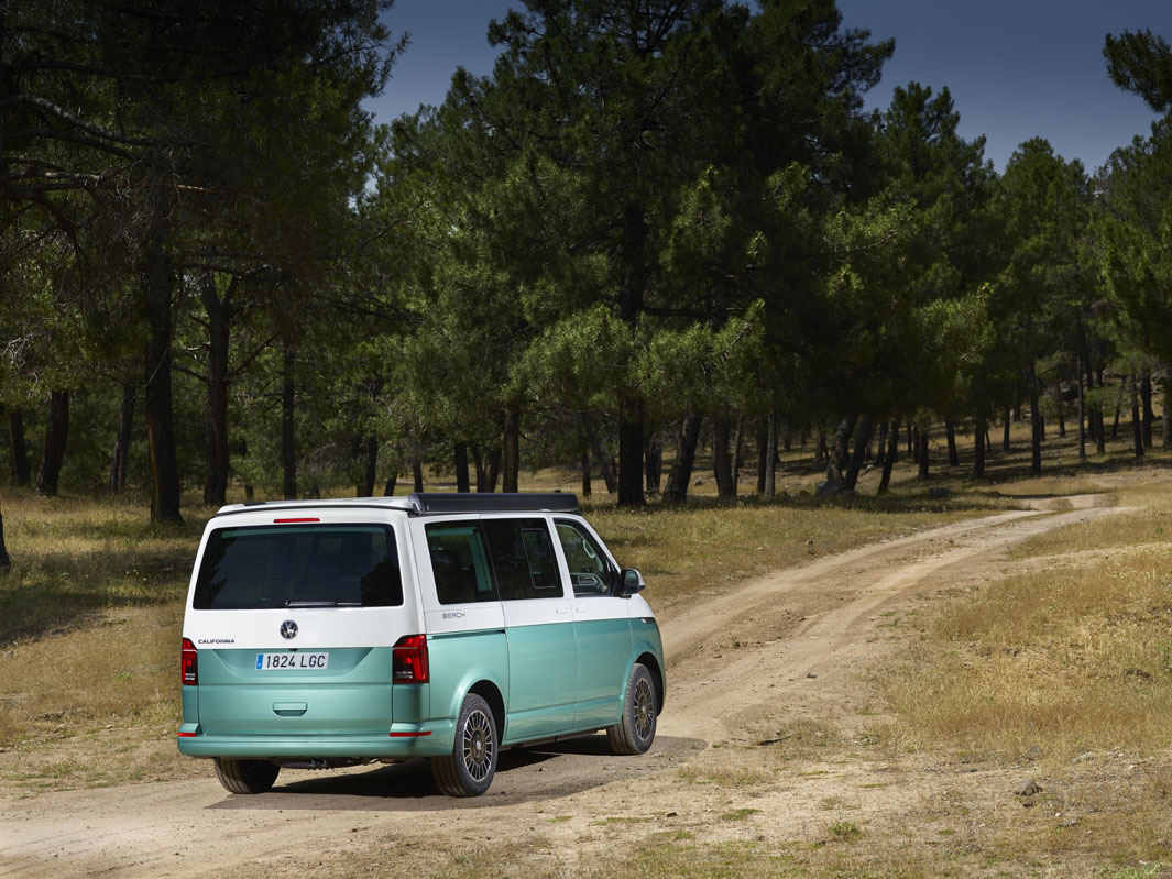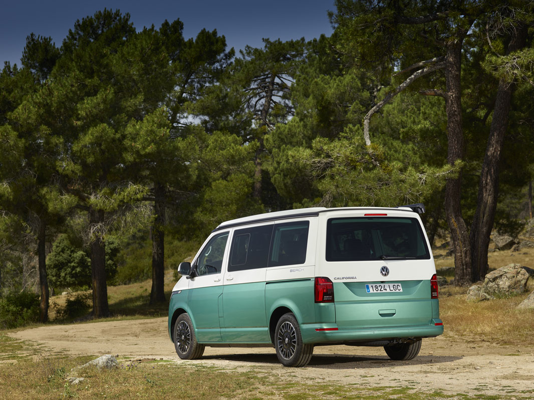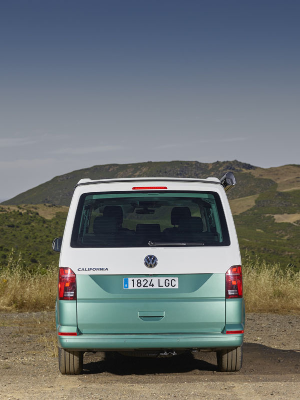 Lo cierto es que exteriormente no necesitaba ninguna pincelada estética. Aún así, la firma de Wolfsburgo ha decidido premiarle con unos nuevos grupos ópticos con una firma lumínica LED diferente -los delanteros incorporan en sus extremos una extensión con la palabra California-, parrilla renovada, paragolpes de nueva factura y nuevas llantas y combinaciones de colores para la carrocería. Por cierto, la de nuestra unidad de pruebas, la que junta el Blanco Candy con el Verde Bay Leaf es acertadísima, como confirman las decenas de cuellos que se han girado al verla durante nuestra semana en Cádiz. Y eso que no existe un sitio con más competencia camper que en la provincia andaluza...
