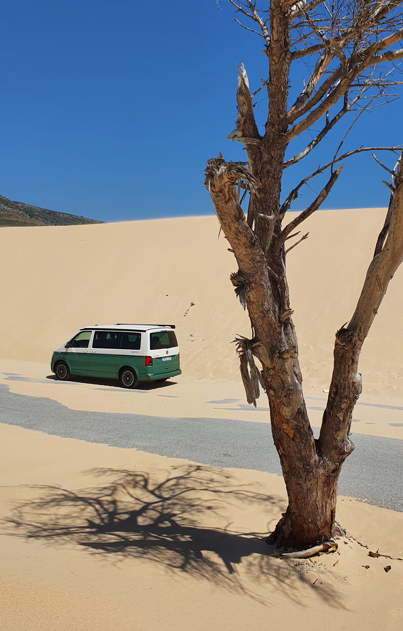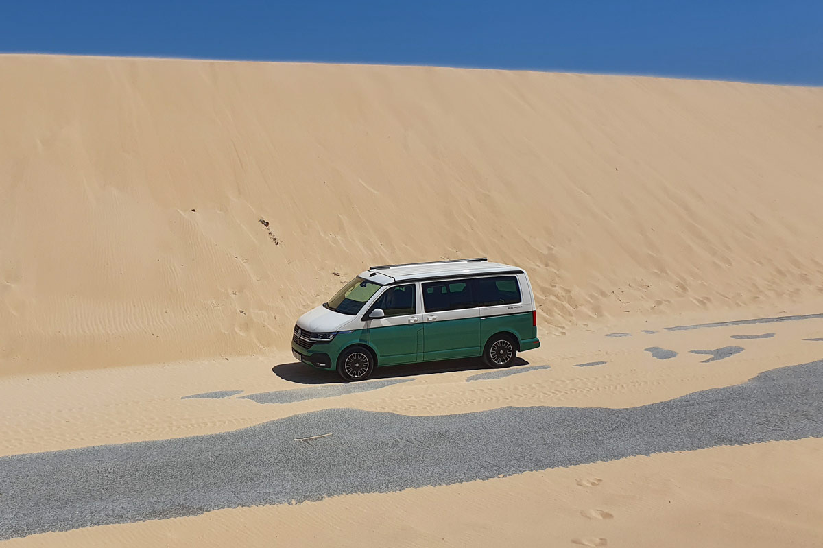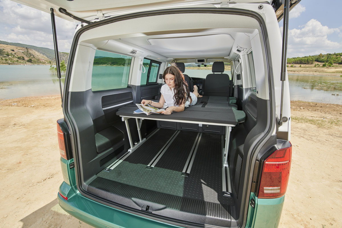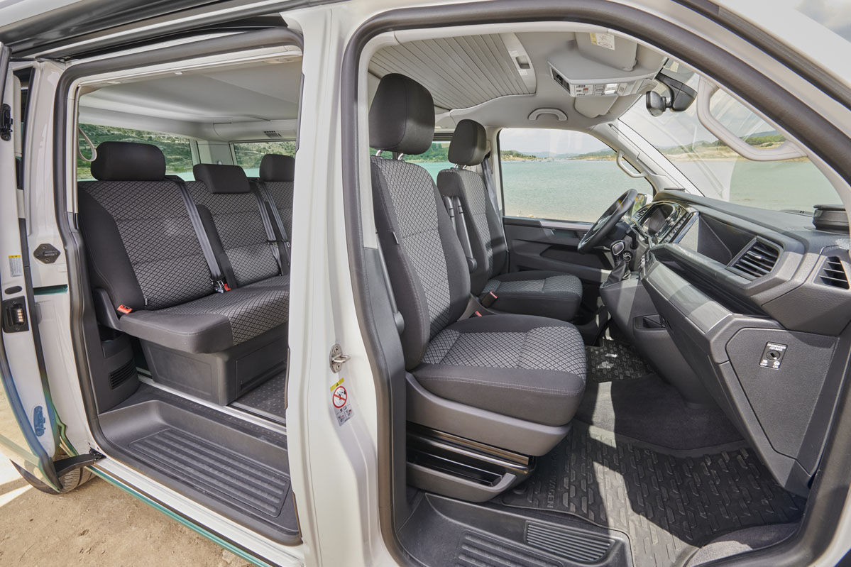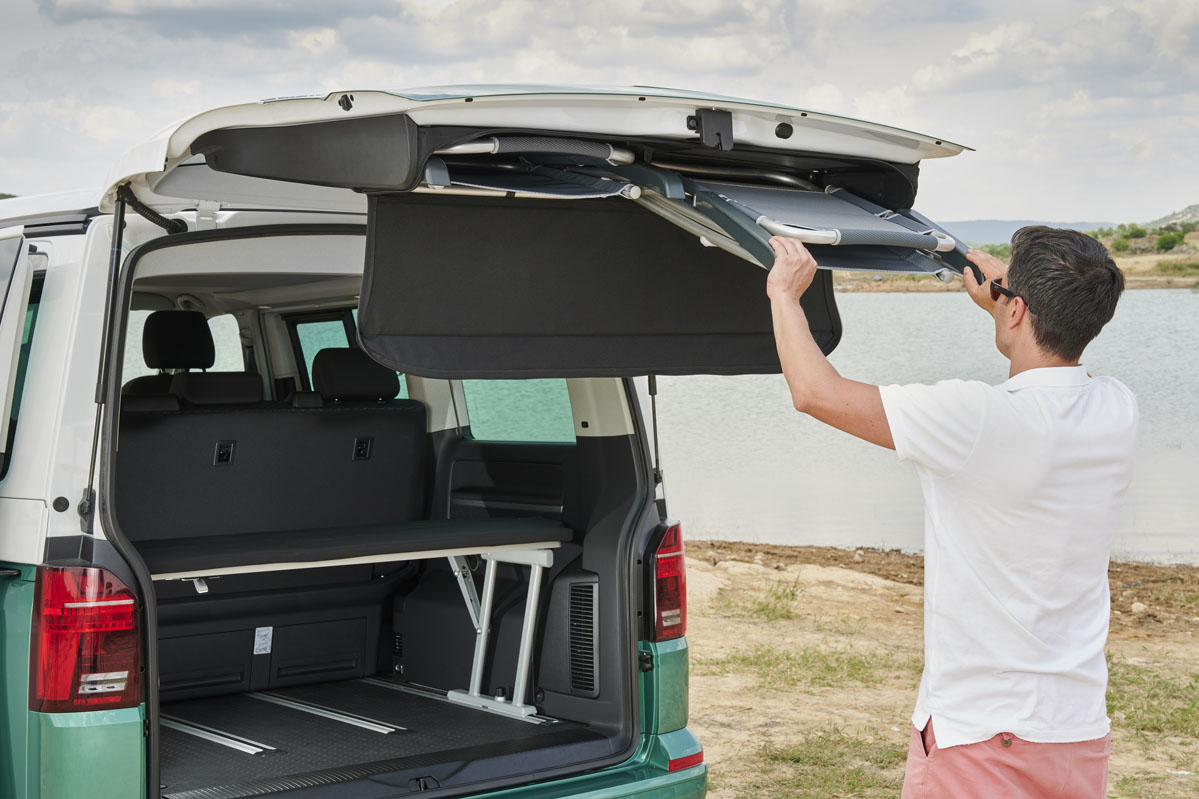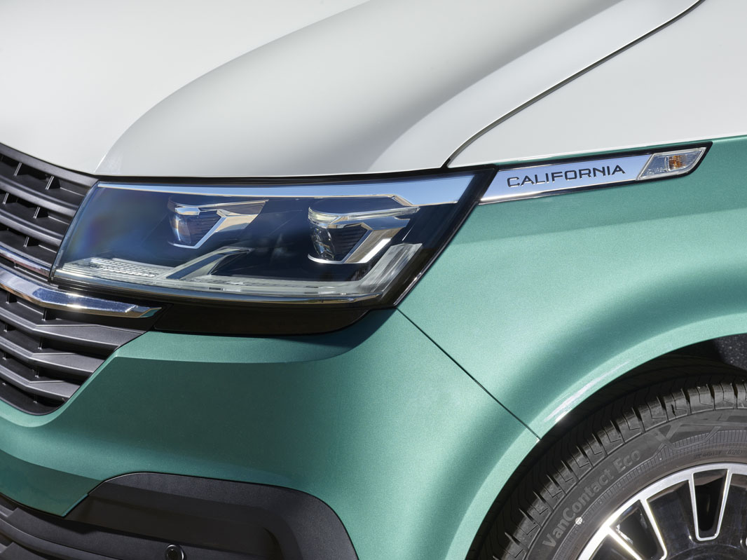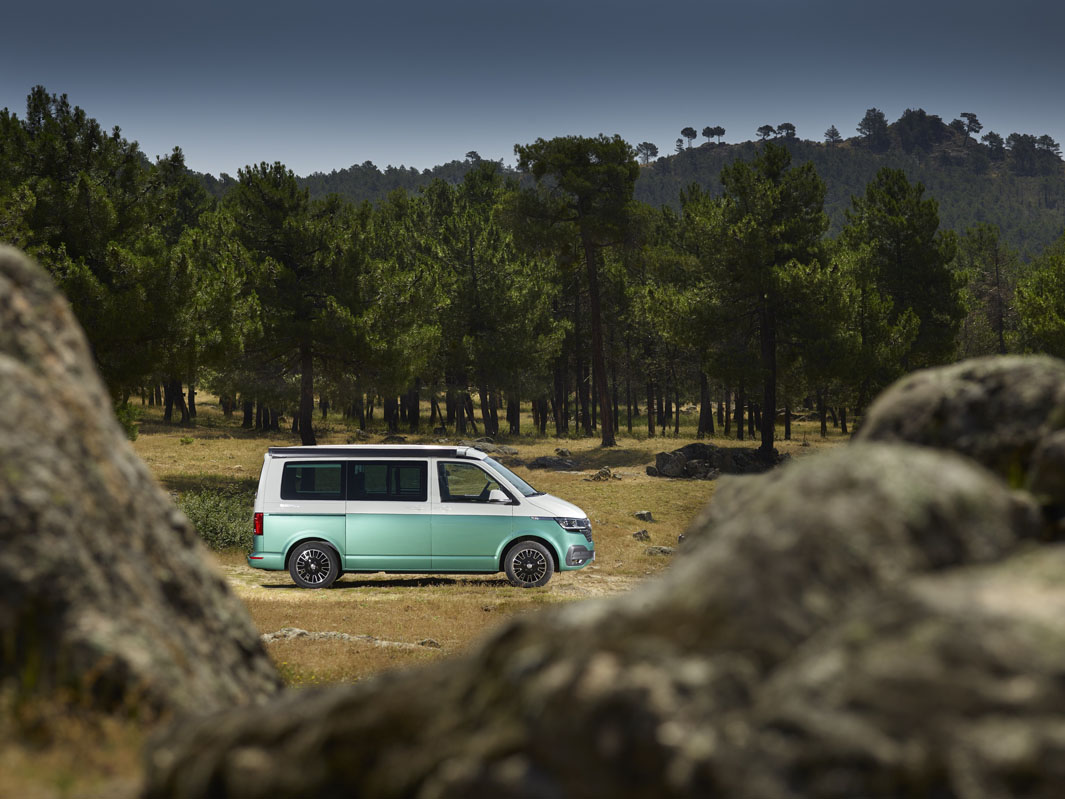 Lo cierto es que exteriormente no necesitaba ninguna pincelada estética. Aún así, la firma de Wolfsburgo ha decidido premiarle con unos nuevos grupos ópticos con una firma lumínica LED diferente -los delanteros incorporan en sus extremos una extensión con la palabra California-, parrilla renovada, paragolpes de nueva factura y nuevas llantas y combinaciones de colores para la carrocería. Por cierto, la de nuestra unidad de pruebas, la que junta el Blanco Candy con el Verde Bay Leaf es acertadísima, como confirman las decenas de cuellos que se han girado al verla durante nuestra semana en Cádiz. Y eso que no existe un sitio con más competencia camper que en la provincia andaluza...