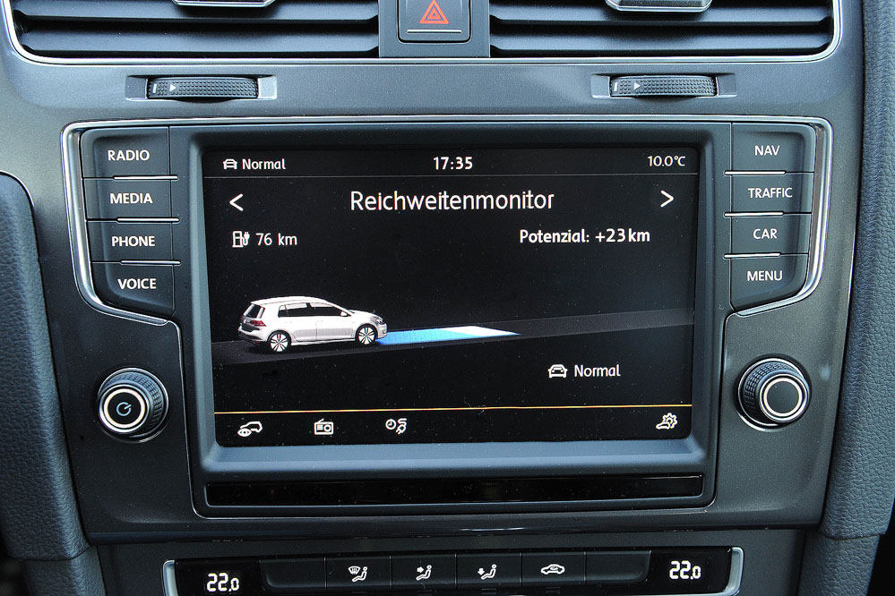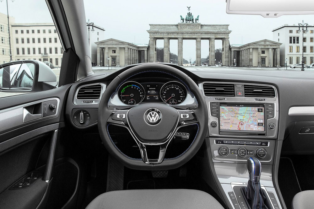 Por lo demás, el Volkswagen e-Golf es como cualquier otro Golf. Mismo funcionamiento y mismo confort de conducción, así como una generosa cantidad de espacio; todos los aspectos que han sido muy valorados por los más de 30 millones de usuarios del modelo a lo largo de las cuatro últimas décadas. Viene muy bien equipado de serie, cuenta con cuatro puertas, un sistema de radio y navegación de alta gama ‘Discover Pro’ -que integra una aplicación de Smartphone llamada Car-Net, que permite la comunicación con el vehículo con funciones como la de visualización del estado de la recarga o de climatización del vehículo antes del viaje-, parabrisas calefactable, climatizador automático, calefacción estacionaria, volante de cuero, llantas de aleación con diseño aerodinámico de tipo ‘Astana’ e incluye, por primera vez en la historia del Golf, faros de LED en todas sus funciones.Son precisamente los faros de iluminación diurna los que nos permitirán identificar, fácilmente y a distancia, a la versión eléctrica del Golf gracias a su forma de ‘c’.