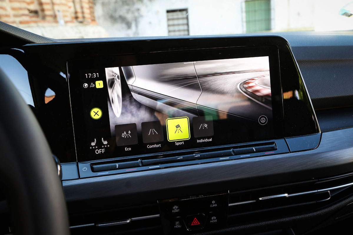 El Volkswagen Golf 8 de la prueba equipa los últimos sistemas como el de apertura y arranque mediante el smartphone, de mantenimiento de carril con frenada de emergencia automática, control de velocidad adaptativo, tecnología Car2X -permite comunicarse y recibir información de la infraestructura y otros vehículos que tenga en un radio de 800 metros-, head-up display en el parabrisas, iluminación ambiente con 32 opciones cromáticas y WI-FI.