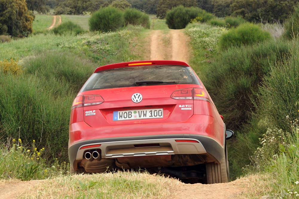 El Volkswagen Golf Alltrack ha sido diseñado para ofrecer una buena respuesta tanto en carretera como en terrenos offroad no muy complicados. La base técnica para ello es la tracción total 4MOTION. Está equipado con un embrague Haldex de última generación que está activo antes de que se origine el deslizamiento, por lo que una posible pérdida de tracción queda eliminada -una bomba hidráulica es capaz de acoplar el eje trasero hasta el 100%-. En conducción normal, el empuje se trasmite principalmente desde el eje delantero, por lo que el trasero está desacoplado. Esta acción ahorra combustible.