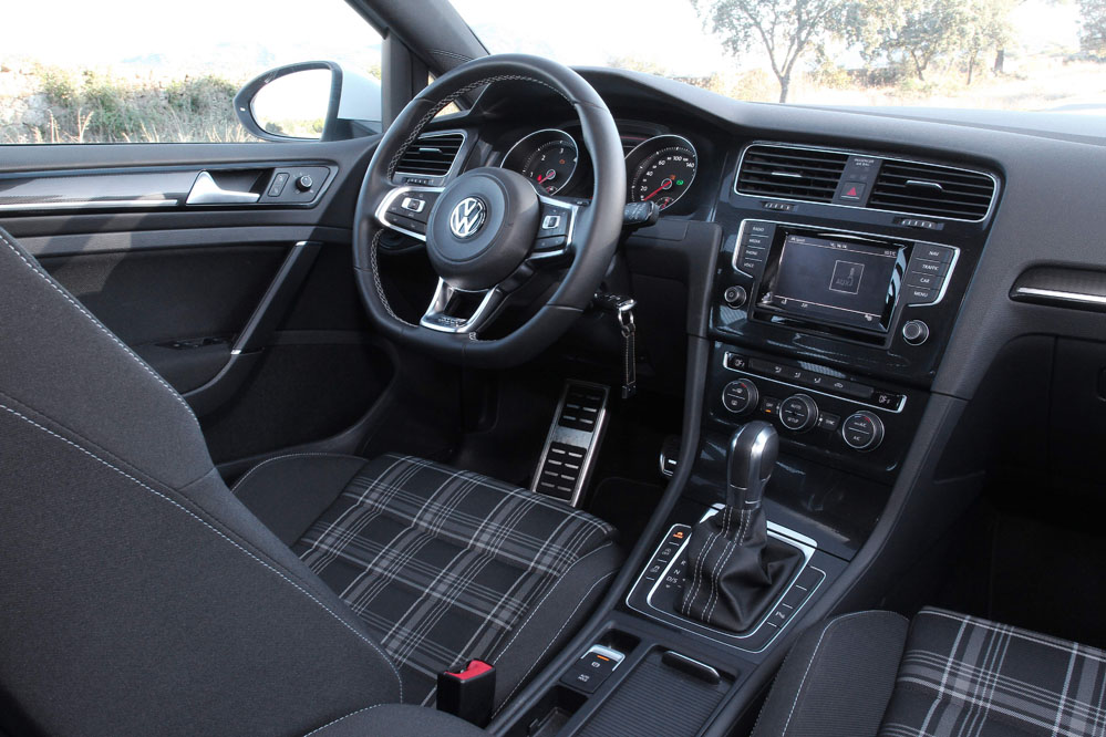 Dentro, los detalles son más justos: asientos deportivos -que sujetan muy bien el cuerpo y a la vez son cómodos- con el clásico patrón a cuadros de la primera generación del Golf GTI, pedalier en aluminio y un pequeño detalle en el brazo inferior del volante. Aquí acaba la cosa en lo que a deportividad se refiere. Pero lo que es innegable es que Volkswagen le ha dado unos muy buenos materiales y ajustes: buen salto respecto a la generación anterior.