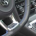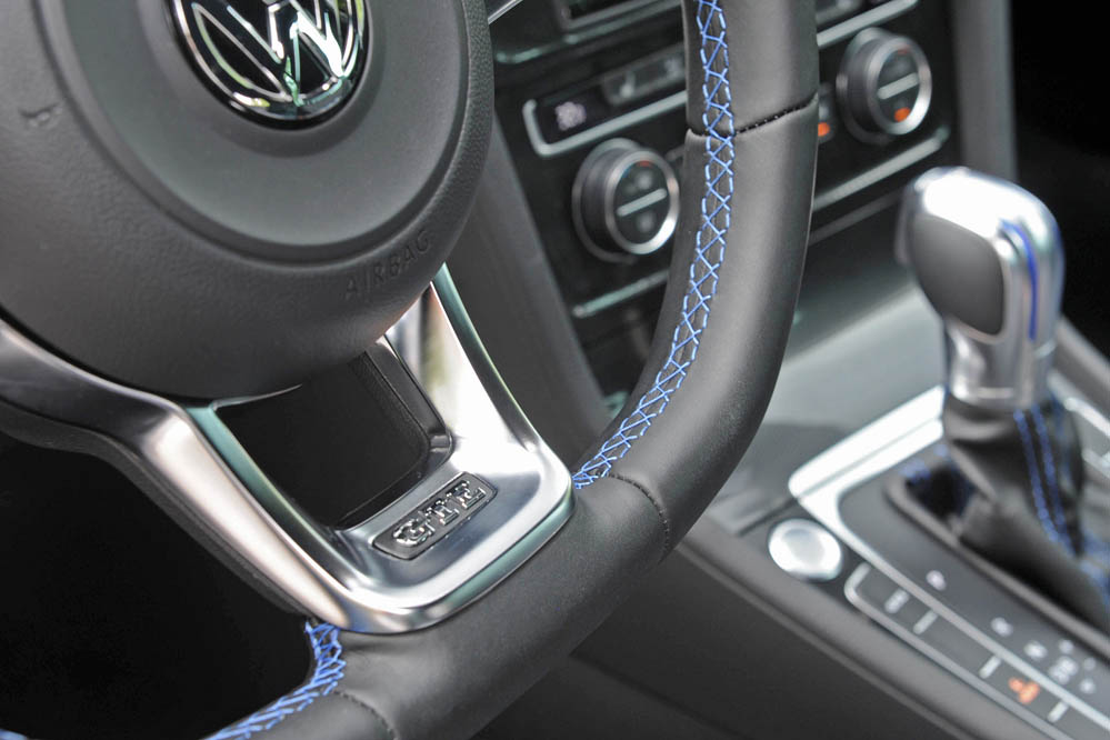 Estéticamente, el Volkswagen Golf GTE que ponemos a prueba exhibe pocas diferencias respecto a sus ‘hermanos’ deportivos. Los colores rojo, en el GTI, y gris, en el GTD, han sido sustituidos por el azul en diversos elementos como las pinzas de freno, las siglas GTE y la parrilla, incluido el fondo del logotipo de VW que, por cierto, esconde la toma de corriente para cargar la batería. Asimismo, destacan y le diferencian del resto de la gama, excepto del Volkswagen e-Golf, las luces diurnas LED con forma de ‘C’ situadas en los extremos del paragolpes delantero.