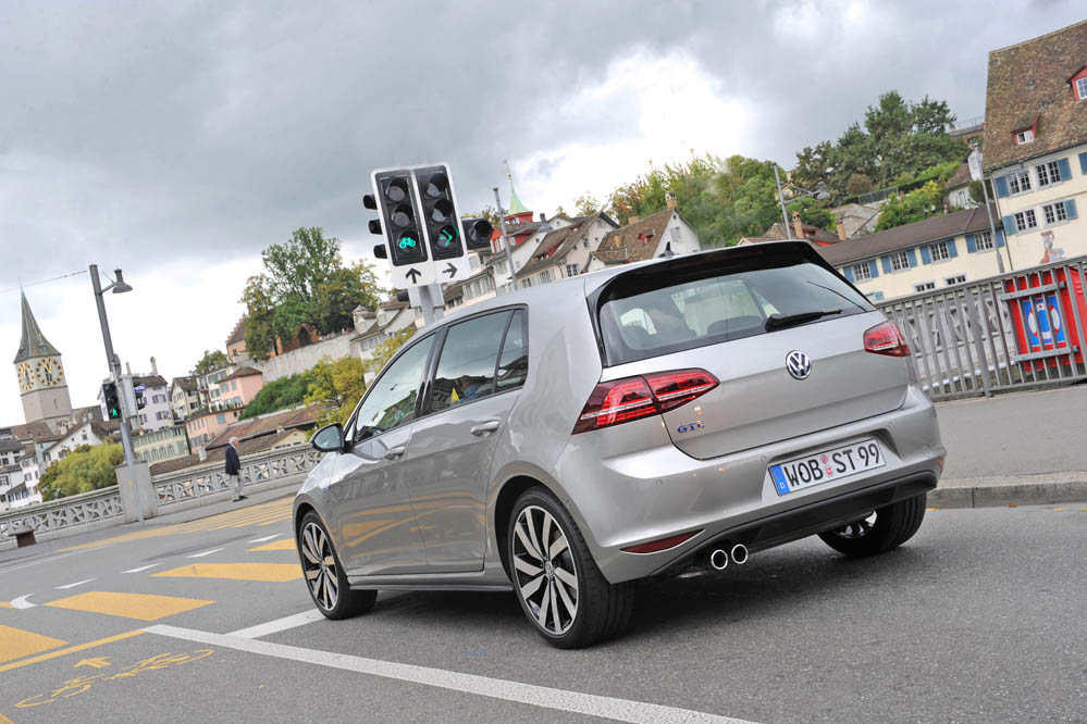 Pero todo sacrificio tiene su recompensa y la del Golf GTE de la prueba es que es el Golf más polivalente gracias a su sistema híbrido. Equipa un motor térmico muy conocido, el 1.4 TSI de 105 CV, y uno eléctrico de 75 kw (102 CV) que en conjunto rinden 204 CV. Esta combinación te permite circular en modo eléctrico 50 km, y si quieres la rabia del GTI (prueba Volkswagen Golf GTI MK7), los dos motores asociados permiten al GTE acelerar de 0 a 100 km/h en 7,6 segundos, lo que significa que lo hace sólo dos décimas más lento que el GTD (prueba Volkswagen Golf GTD MK7), y alcanzar los 220 km/h de velocidad punta. También, y gracias a este conjunto, el consumo medio se sitúa en 1,5 l/100 km y las emisiones en 35 g/km. Asimismo, con él puedes recorrer 939 km sin parar a repostar.