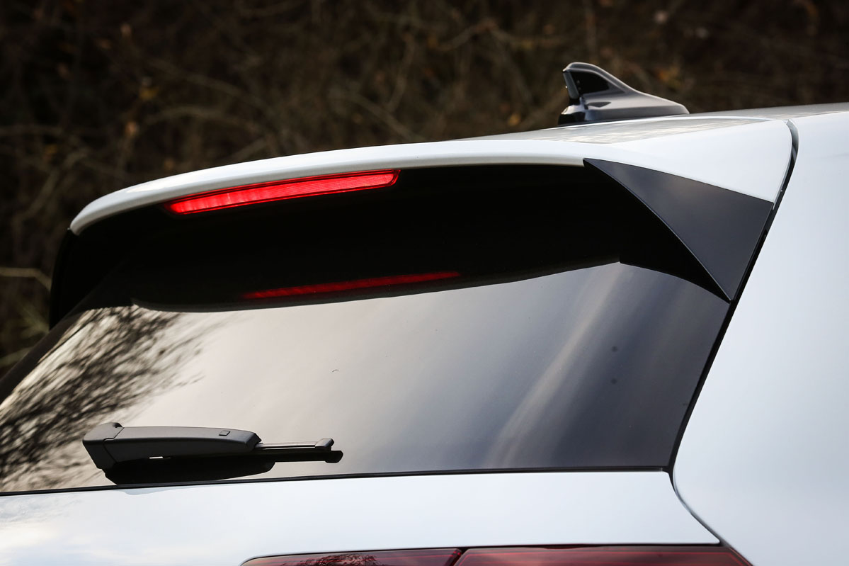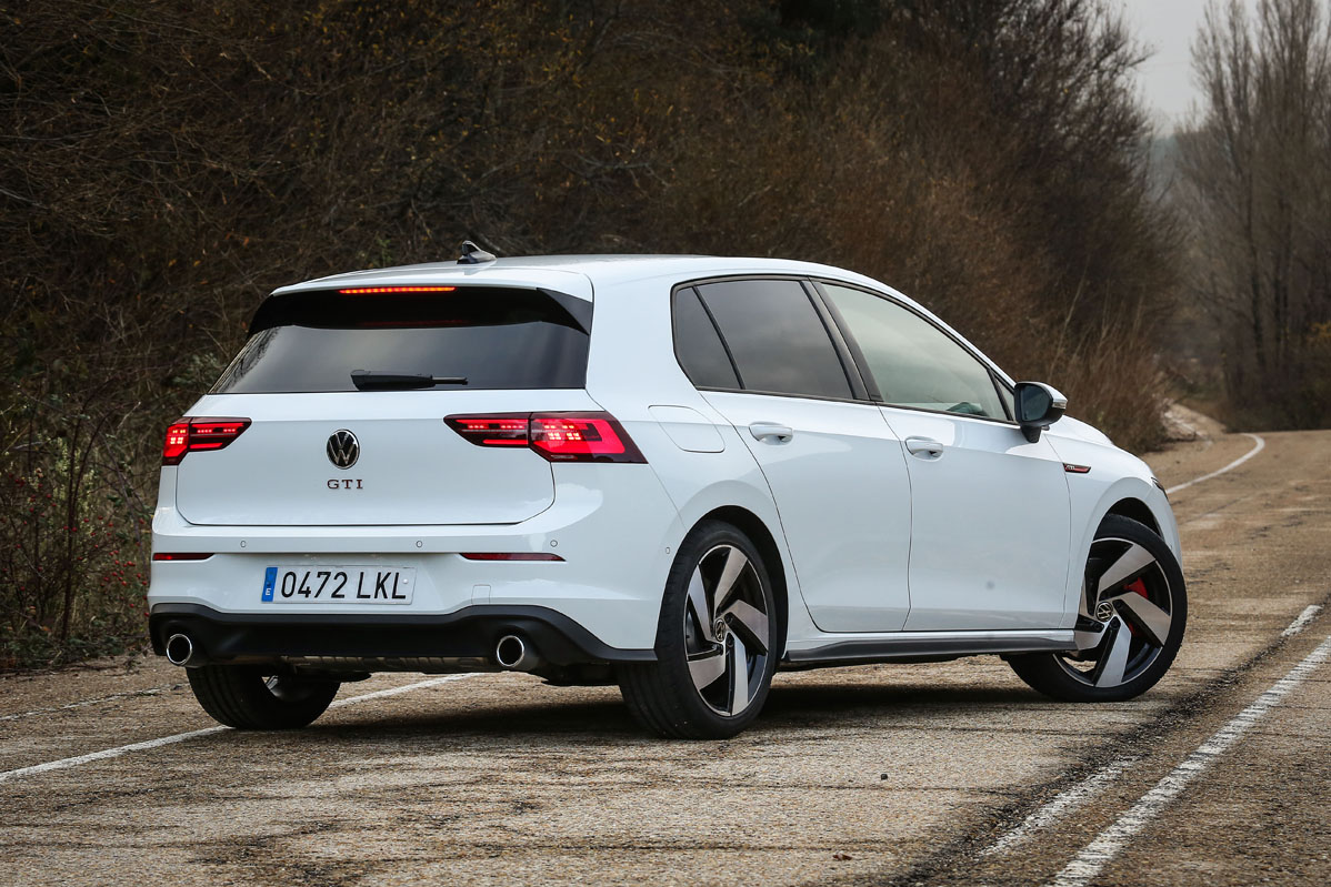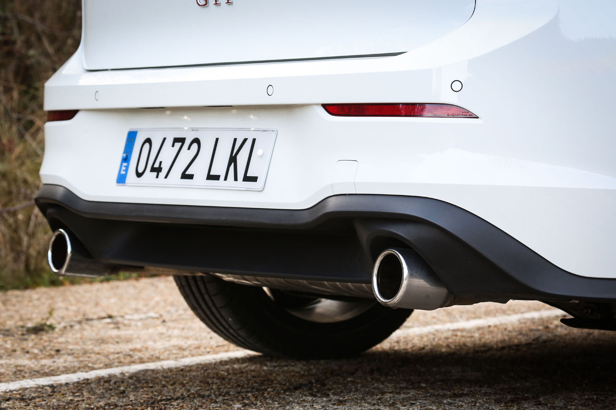 La trasera gana en personalidad con las letras GTI en el centro del portón -en lugar de estar en el lado del conductor-, con el alerón bicolor -la parte superior está pintado en el color de la carrocería y la inferior, en negro brillante-, el difusor y los dos escapes circulares, uno a cada lado.