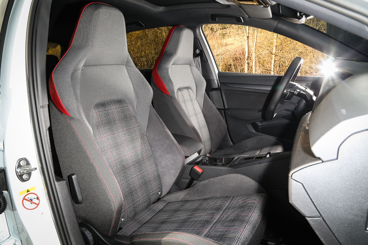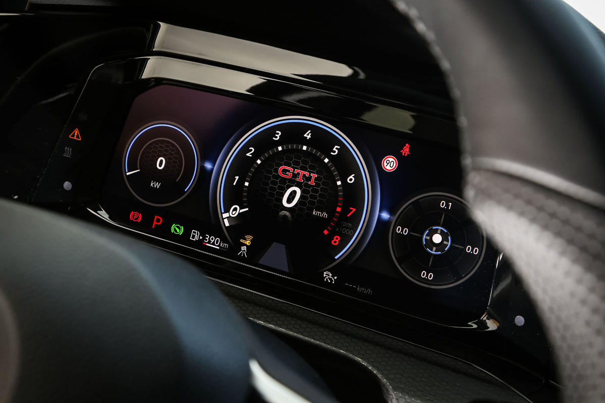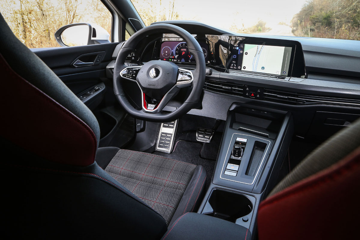 Su imagen presenta rasgos distintivos que han perdurado en el tiempo: la línea roja en la parrilla del radiador, la tapicería a cuadros -fue recuperada desde la quinta- y el pomo del cambio con forma de bola de golf; lástima que la unidad de la prueba del nuevo Golf GTI sea automática.
