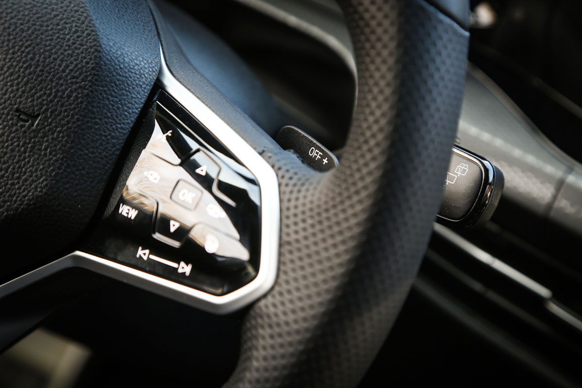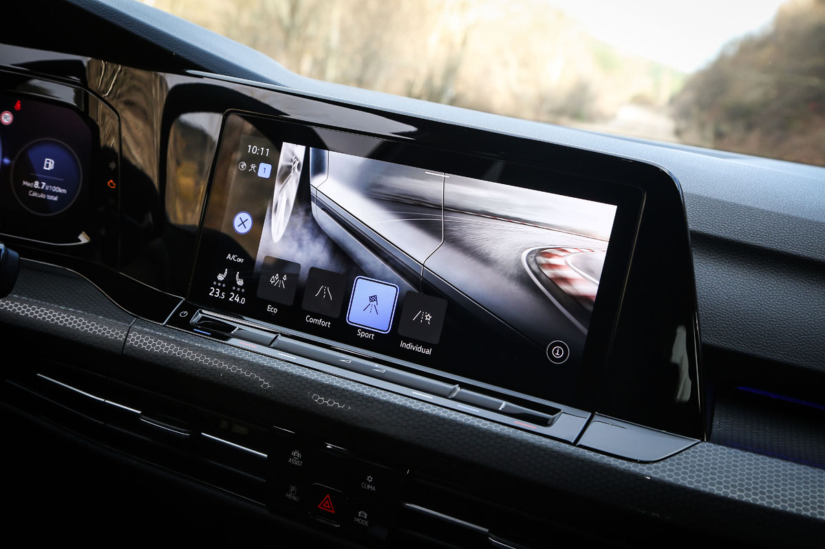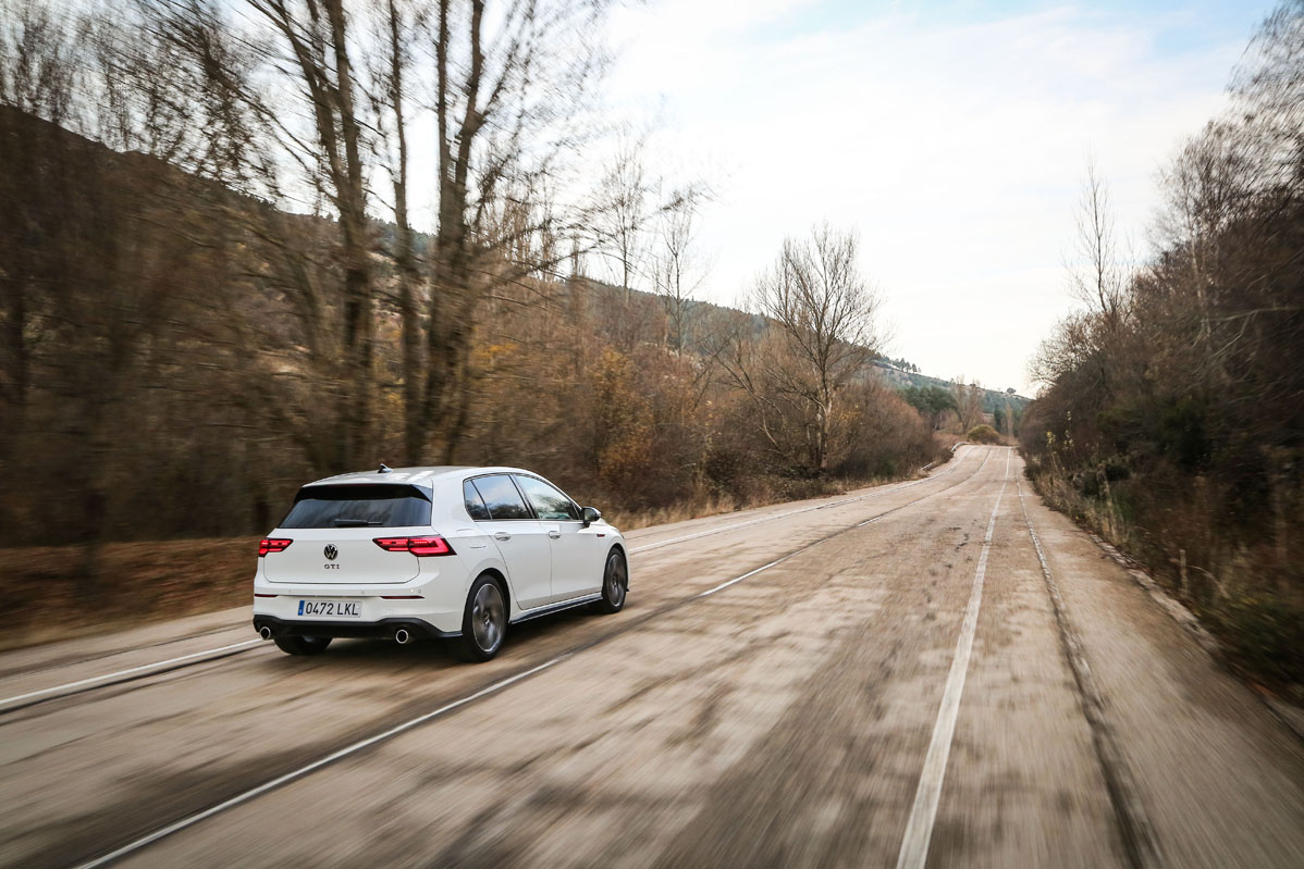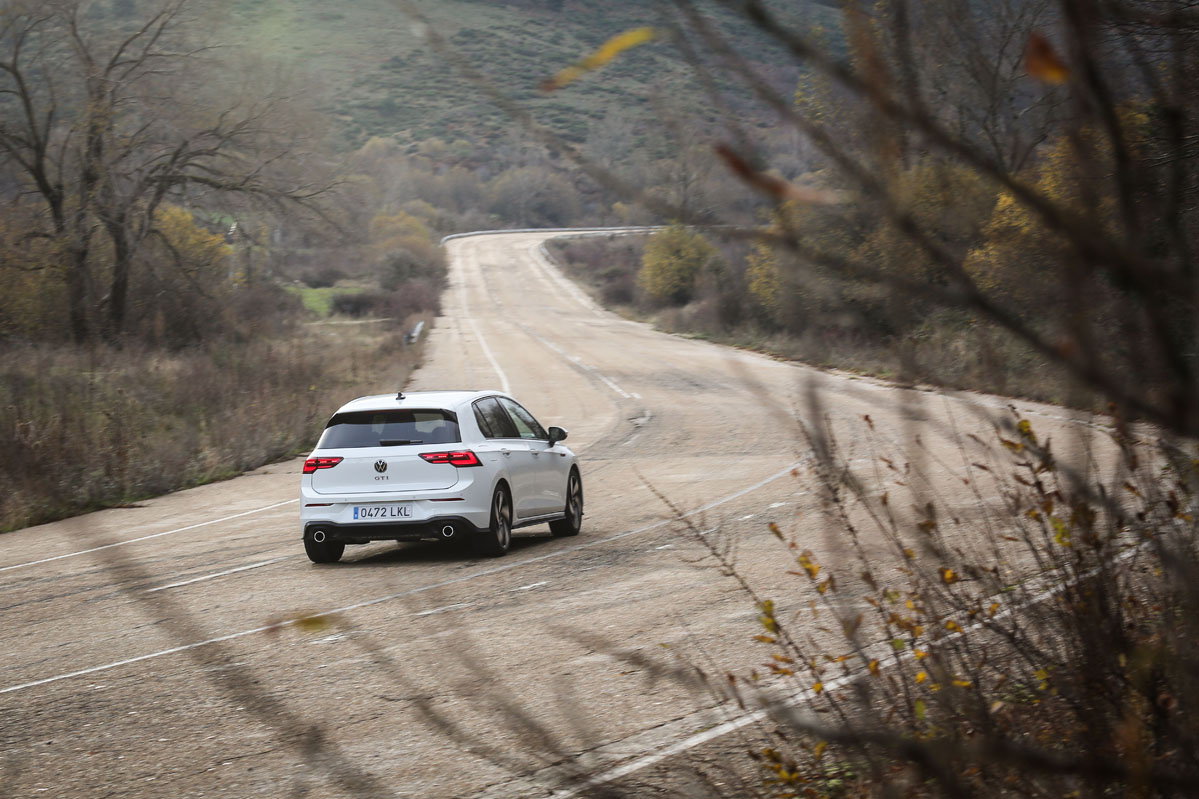 Y es que el coche que es cómodo incluso en el modo Sport, y eso que en el Individual se puede configurar la dureza de la suspensión con sus 15 niveles. Pero, por favor, no me malinterpretes. Este GTI ofrece una respuesta en curva realmente buena con el bloqueo electrónico del diferencial, con el bloqueo transversal del eje delantero y siempre con la carrocería casi plana, 15 mm más pegada al suelo, sin balanceos ni cabeceos, gracias a unos nuevos cojinetes y una mayor rigidez respecto al GTI anterior -5% en el eje delantero y 15 en el trasero-. Suma una dirección progresiva que pone el coche donde quieres y unas detonaciones que animan la conducción cuando suelto gas.