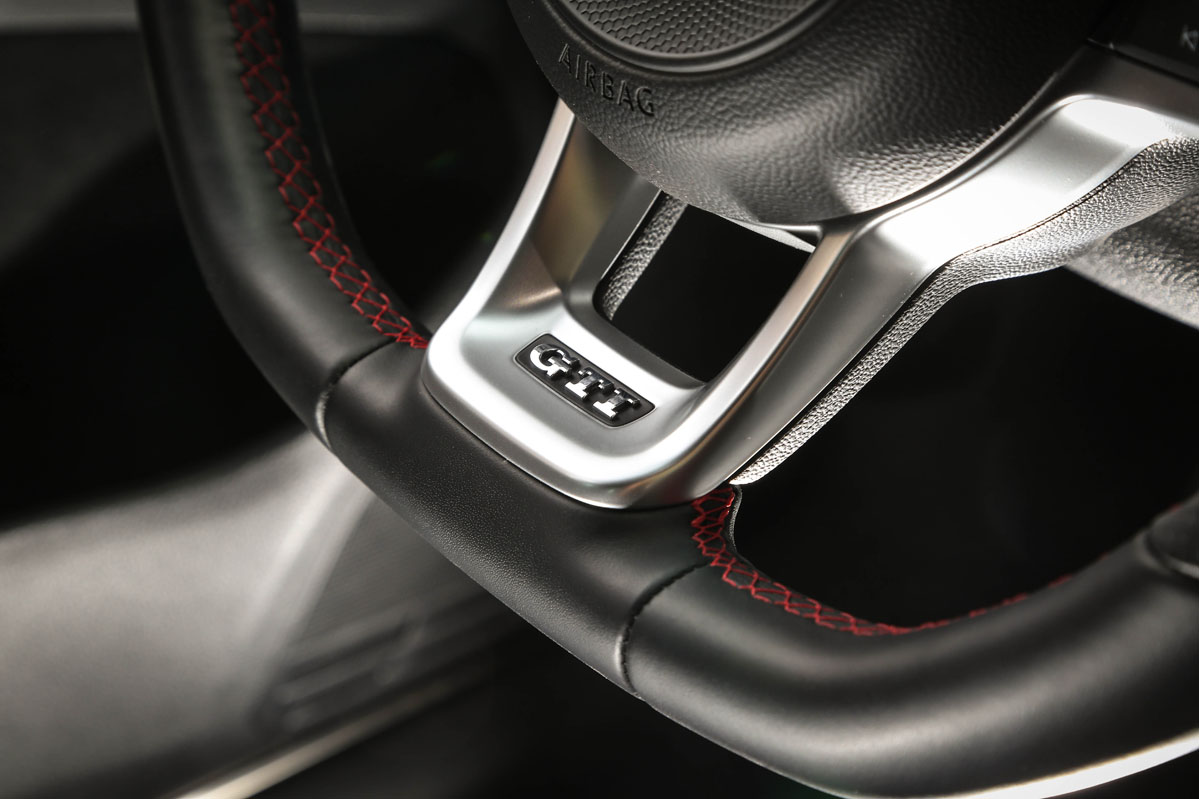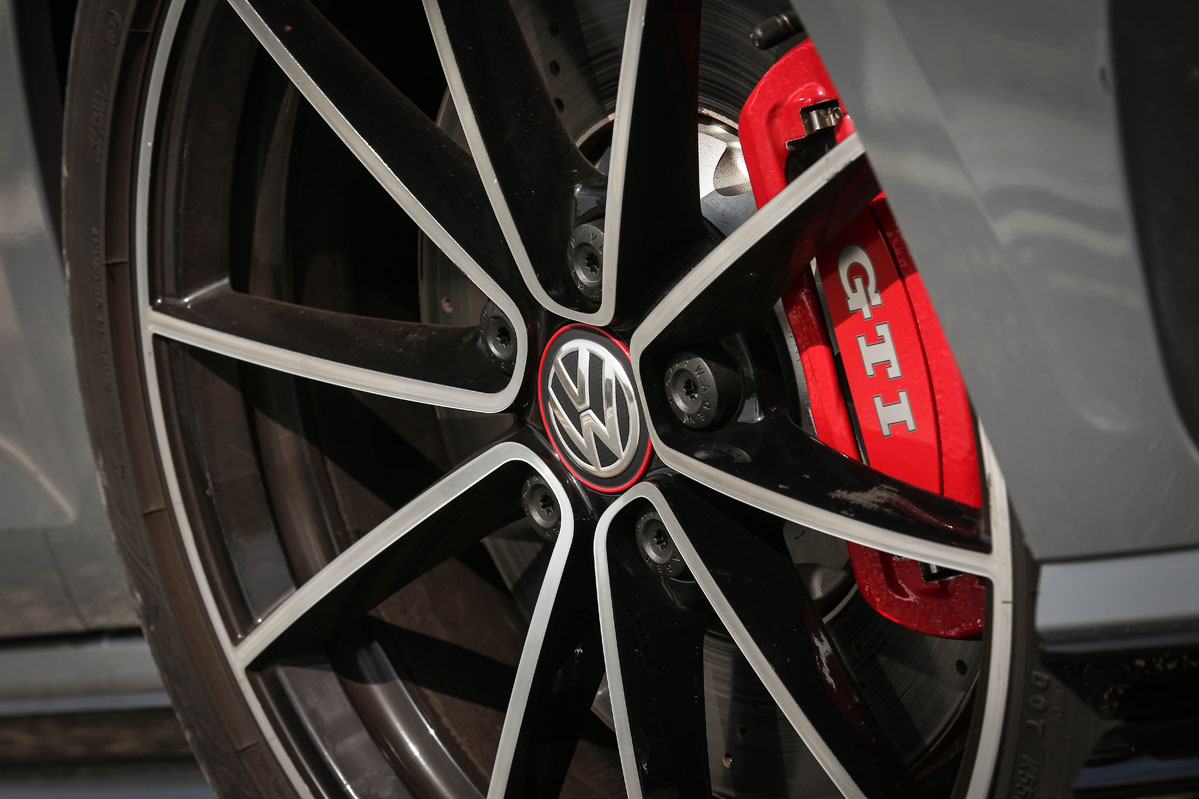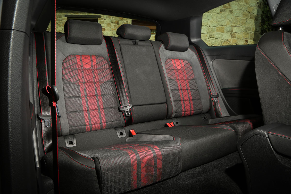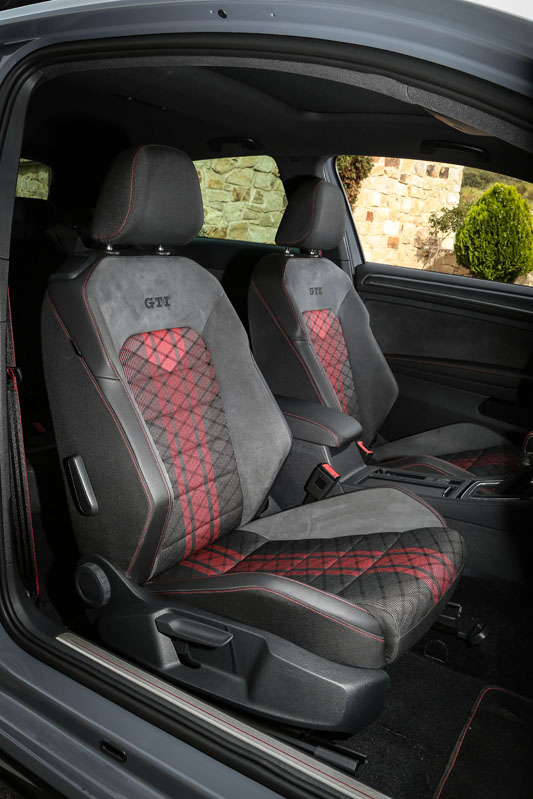 Pero, primero, permíteme que eche un vistazo a su exterior. ¡Tremendo! Lo que me ha parecido más sugerente son su difusor traseros y su splitter frontal, mucho más radicales, llamativos y que sobresalen de la carrocería. Tampoco pasan desapercibidos los retrovisores en negro, las taloneras, el alerón de techo específico y las llantas Belvedere de 18 pulgadas. Dados los tiempos que corren, su tamaño puede parecer justo. Si con ellas no te conformas, tienes llantas de 19 pulgadas Reifnitz en negro mate o las Pretoria, también de 19, en negro brillo con neumáticos semislick. Las primeras vienen incluidas en un paquete que cuesta 1.305 euros y que, además, añade suspensión posterior recalibrada y dirección progresiva. Las segundas, por 2.170 euros y el mismo equipamiento anterior. Marida este apetecible conjunto unos frenos de disco delanteros perforados y flotantes y el color exclusivo Gris Puro con vinilos decorativos de color negro. Lámame loco, pero me atrevería a decir que el Volkswagen Golf GTI TCR gana al Golf R en aspecto deportivo.
