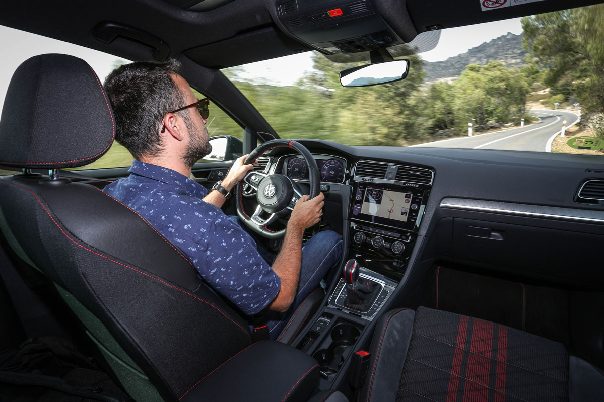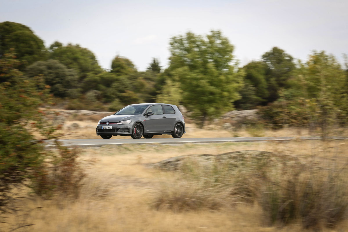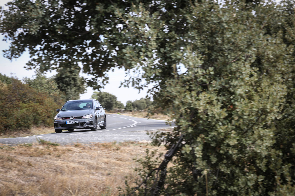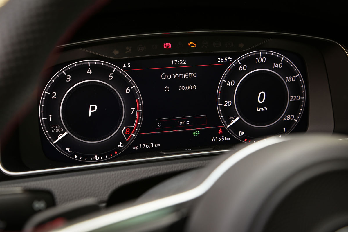 Y después de tanto observar, es la hora de sentir. Enciendo su conocido y reconocido 2.0 TSI. El sonido es brutal, me encanta; vengo de probar un BMW M2 Competition y no hay color. Mi cuerpo me pide que no inicie la marcha para seguir escuchando ese sensacional ronroneo a ralentí. 290 CV me esperan bajo del pie derecho a que les de rienda suelta. No les voy a hacer esperar más. Escojo el modo de conducción más deportivo, pongo la palanca del cambio DSG en S e instantáneamente comienzo a disfrutar. El Volkswagen Golf GTI TCR de la prueba promete cifras de infarto: acelera de 0 a 100 km/h en 5,6" y alcanza los 264 km/h.