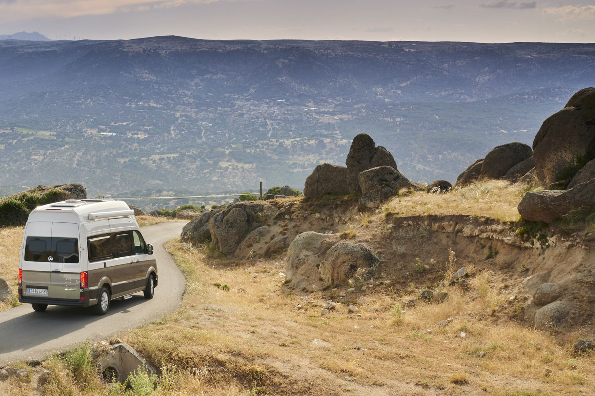 - Y luego está la gama VW Crafter, que es un salto a un chasis más grande e industrial, sobre el que se montan la VW Crafter Furgón (y derivados -Chasis, Fresh, Box-) y… ¡ta-chán!, nuestra VW Grand California, que es, como entenderás mejor ahora, el escalón más cercano que tiene Volkswagen al segmento de las autocaravanas (una gran ‘roulotte’ integrada en un vehículo comercial). La hay más larga (modelo Grand California 680, -6,80 m de largo por 2,84 m de alto-) y la que ha sido ‘nuestra’ por unos días (la Grand California 600, que es menos larga y más alta). De hecho, eso ya va en gustos y preferencias, porque las dos tienen un precio de partida de 79.155 euros. Y la marca también ofrece fórmulas de financiación.