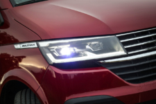La Multivan T6.1 muestra un elegante frontal con una parrilla de dos lamas cromadas y unos faros halógenos H7 con tecnología led -opcionales en los acabados de acceso- y la denominación del modelo en los extremos. También le dan su toque las nuevas llantas y los renovados integrantes de la gama de colores.