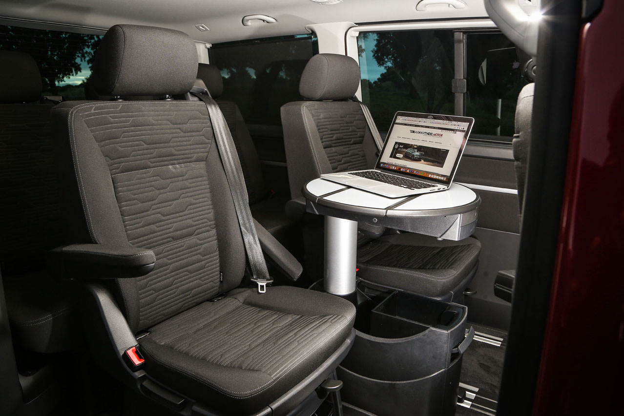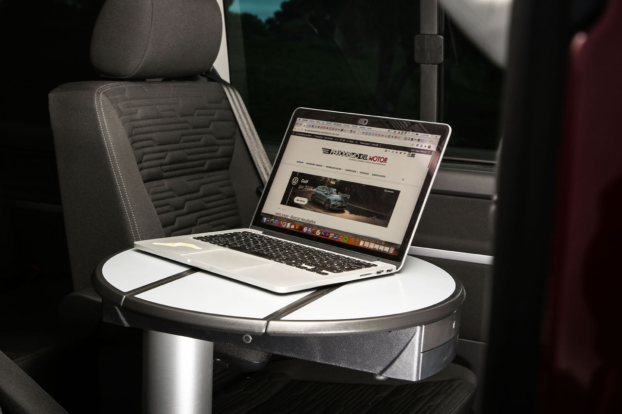Las medidas no varían. Cuenta con una longitud de 4,90 metros, una anchura de 1,90 y una altura de 1,97, por lo que meterla en un garaje público no es problema al no superar los dos metros de altura. Y es por ello, por sus cotas, por lo que ofrece un espacio a los ocupantes enorme. No olvides el maletero, que va en consonancia, y la modularidad de sus asientos, que se pueden colocar de diferente forma gracias a los raíles del suelo. Llámame loco, pero esta prueba la estoy escribiendo dentro; es lo que tiene disponer de una mesa plegable. ¿Tienes esa opción en un monovolumen? Menos en un SUV...