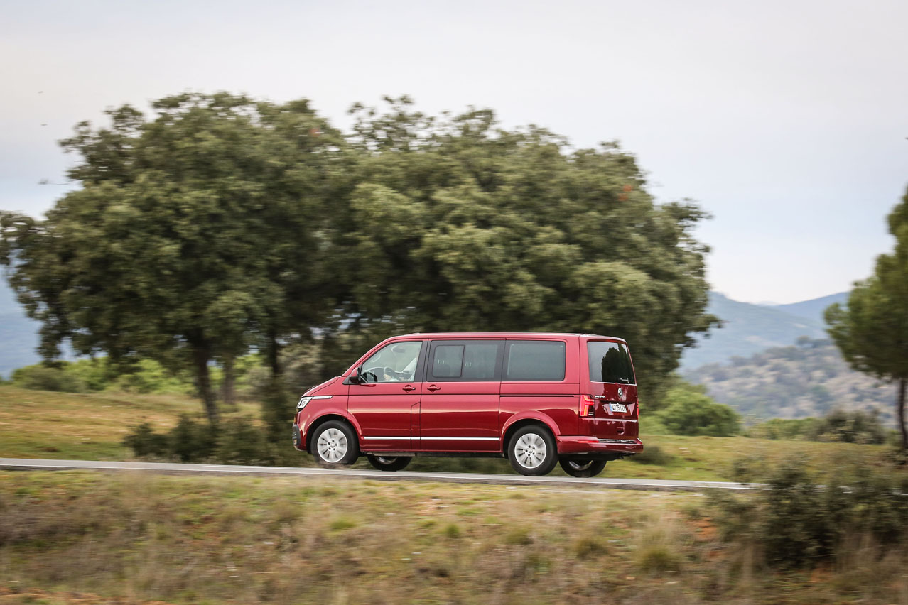 La unidad de pruebas del Volkswagen Multivan T6.1 equipa el motor 2.0 TDI de 150 CV, el intermedio de la gama -el de 110 y el de 198 CV, siempre diésel, eso sí, están disponibles dependiendo de la versión: Origin, Outdoor, Premium Batalla Corta y Outdoor Panamericana-. Como te decía, es el intermedio, pero también el más equilibrado. Es capaz de mover con soltura esta furgoneta, incluso cargada con ocupantes -otra cosa es con sus respectivos equipajes, por lo que si vas a hacer viajes largos, mejor que te decantes por la más potente-. Ten en cuenta que todo su par, 340 Nm, es entregado a solo 1.500. Súmale un consumo bastante justo de unos 8,4 l/100 km.