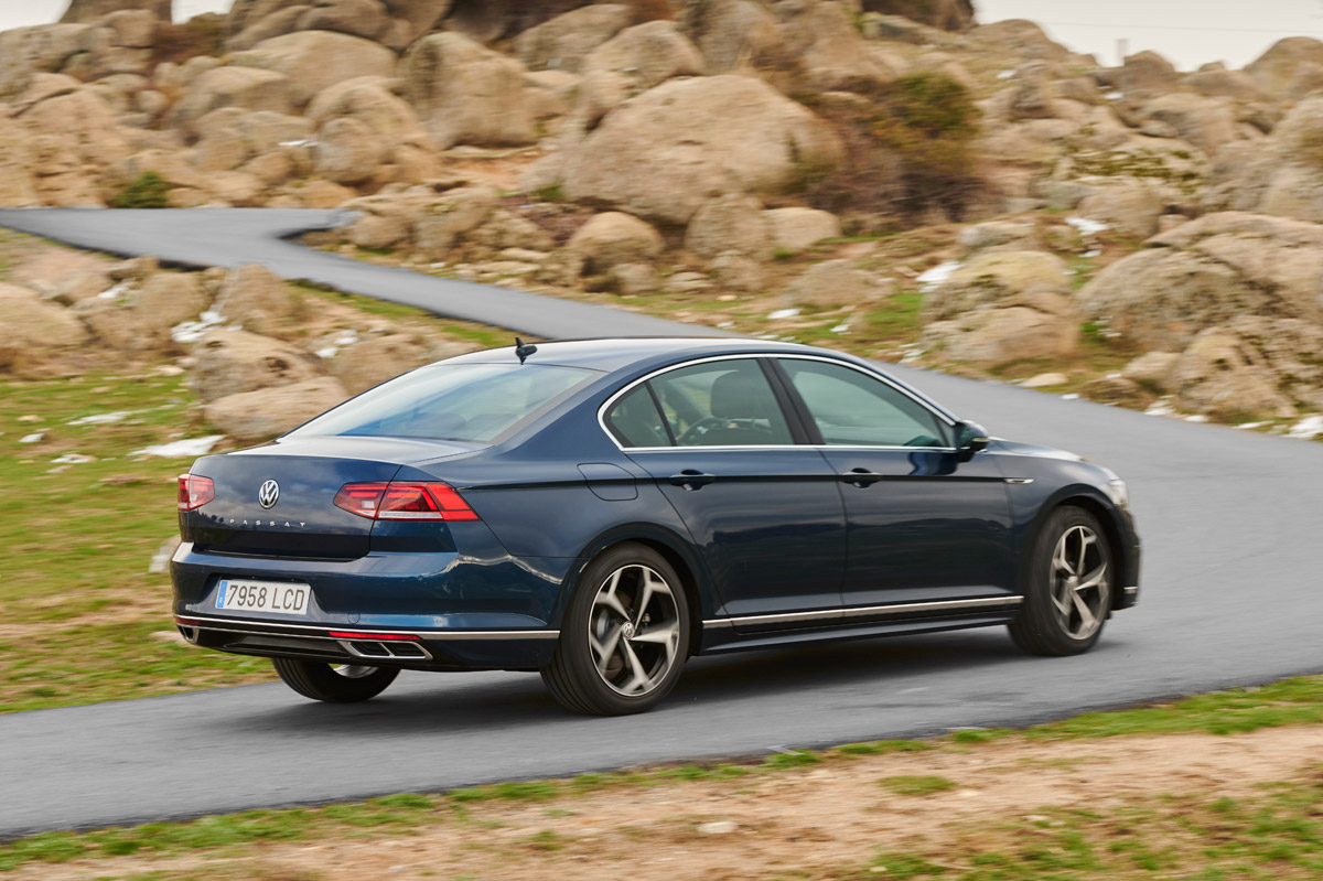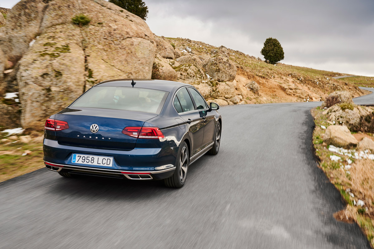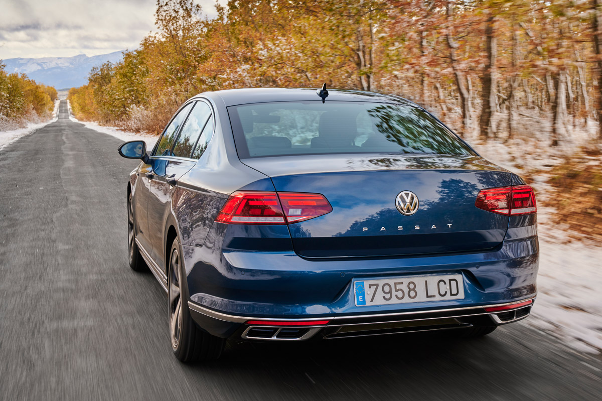 Después del repaso técnico, echo un vistazo a su exterior. Como te decía al principio de la prueba del Volkswagen Passat 2020, los cambios son leves porque tampoco era necesaria una renovación profunda. Destacan los paragolpes de nuevo cuño y los faros Full LED, que vienen de serie con el acabado más bajo -los opcionales son los matriciales LED IQ.Light que equipa el Touareg (prueba)- y la palabra Passat en el centro del portón. Además, la gama de llantas crece, destacando las opcionales Petroria de 19 pulgadas en mate grafito oscuro, así como la gama de colores, a la que se suman el Rojo Tornado -muchos años hacía que la berlina no contaba con un rojo-, Azul Eléctrico Metalizado -novedad en el Passat- y Verde Botella, disponible solo en la versión Alltrack.