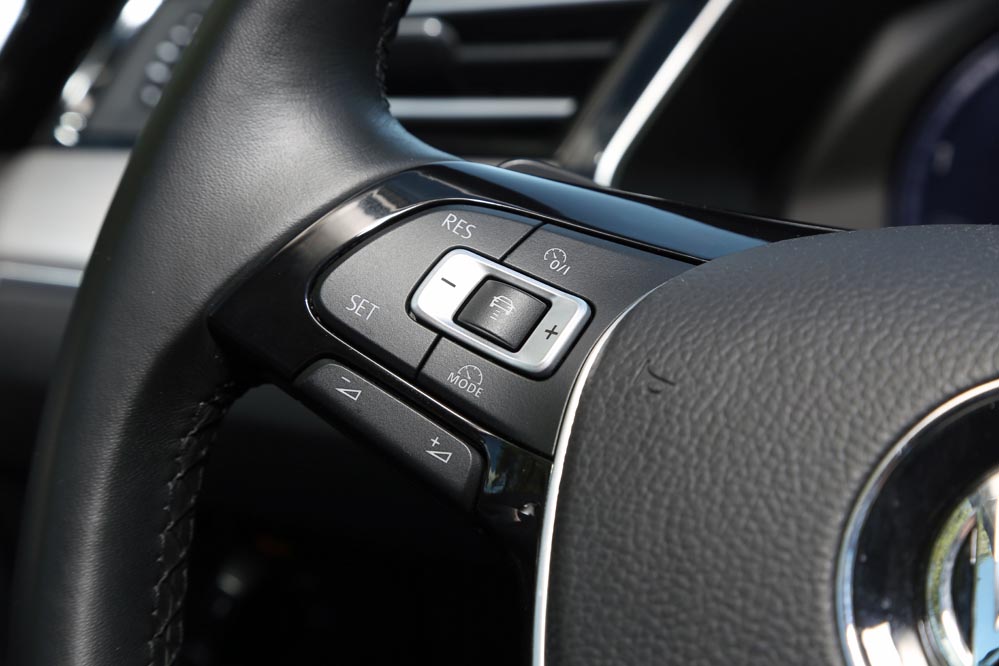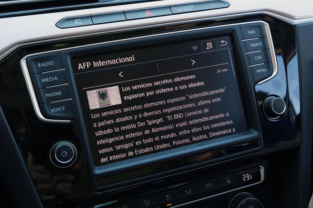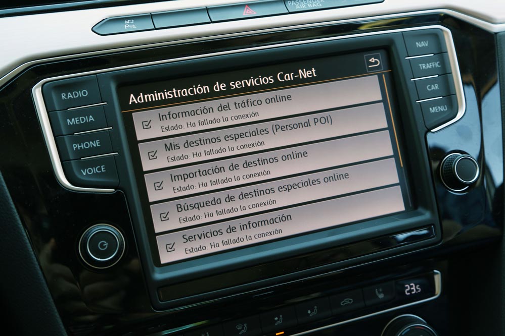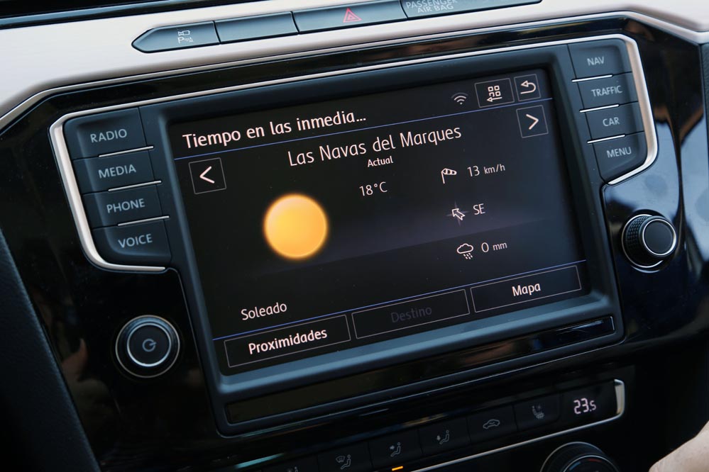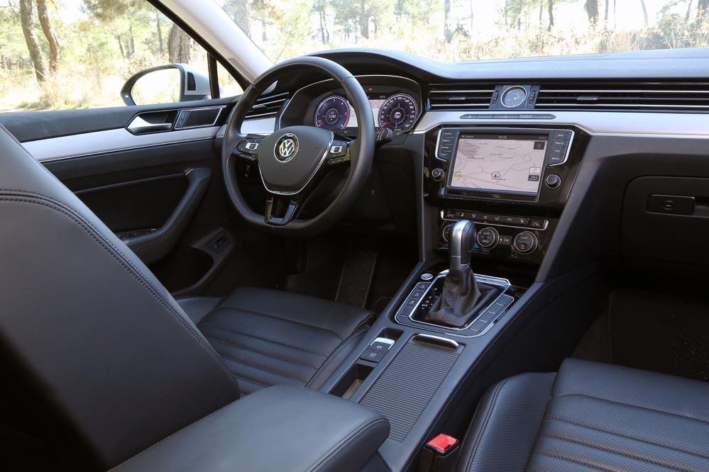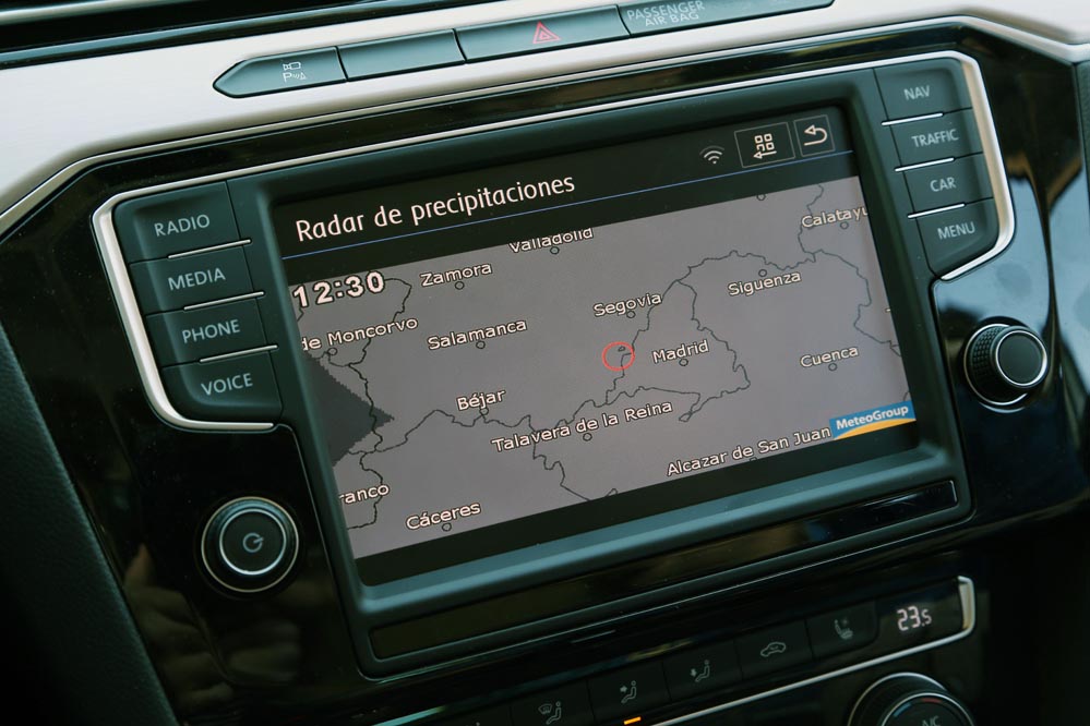 Es curioso, porque estoy ante el modelo más potente de la gama: un dos litros biturbo diésel que entrega 240 CV y un cambio automático DSG de 7 velocidades para gestionarlo con eficacia. Aun así, cuando me pongo al volante, este coche no me incita a exprimirlo, sino a hacer kilómetros y kilómetros sin el estrés al que estoy habituado. A esto ayuda, sin duda, un habitáculo amplio y equipado hasta los topes que refuerza el excelente confort de marcha y cuya factura recuerda a modelos más premium. Uno de los elementos que más me han llamado la atención (de serie en esta versión) es el llamativo cuadro de mandos con pantalla digital HD de 12,3″, configurable de mil maneras. Es verdad que un cuadro de mandos analógico ofrece lo esencial por bastante menos dinero, pero no es menos cierto que este tipo de detalles suelen encandilar a los conductores y forma parte de los elementos diferenciadores de unos coches frente a otros o, lo que es lo mismo: “mira lo que tiene el coche de mi vecino…” Aunque, pensándolo bien, además de fardar del display digital de 12,3″ HD, hay una característica que, por lo menos en mi caso, me sirve de bastante ayuda: poder consultar la ruta del navegador a la altura del propio cuadro, sin tener que desplazar mi mirada a la consola central. Esto añade un plus de seguridad muy importante teniendo en cuenta la problemática de las distracciones al volante.