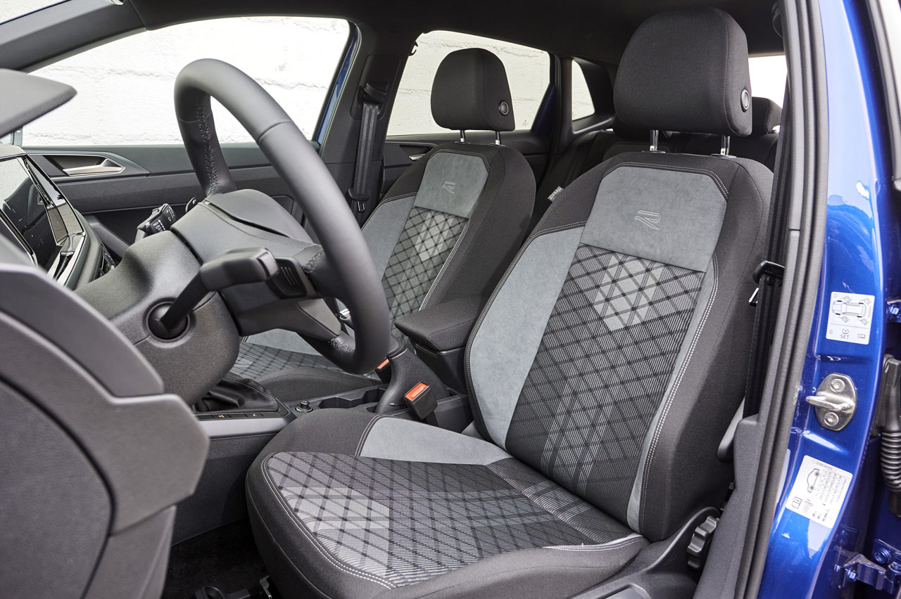 Si abrimos la puerta y subimos a bordo, descubriremos más diferencias. Como por ejemplo, los asientos de diseño deportivo con tapizado específico, el volante deportivo de cuero, el guarnecido del techo en negro, las molduras decorativas en gris mate o los pedales de aluminio. También presenta unas protecciones en los umbrales de las puertas con la leyenda “R-Line”.