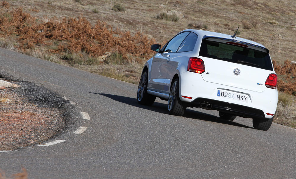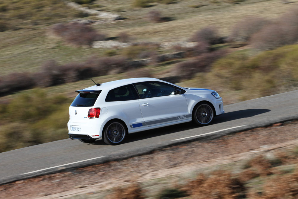 Gracias a la prueba del Volkswagen Polo WRC R he podido comprobar que la suspensión es bastante dura, pero no llega a ser seca. La amortiguación McPherson delantera y semiindependiente trasera es todavía más firme que la de los Polo y Golf GTI. A pesar de ello absorbe bien las irregularidades del asfalto y, además, gracias a este tarado, que no llega a moler tus riñones, el vehículo tiene un extraordinario comportamiento dinámico. Además, es realmente noble y la zaga no da susto alguno.