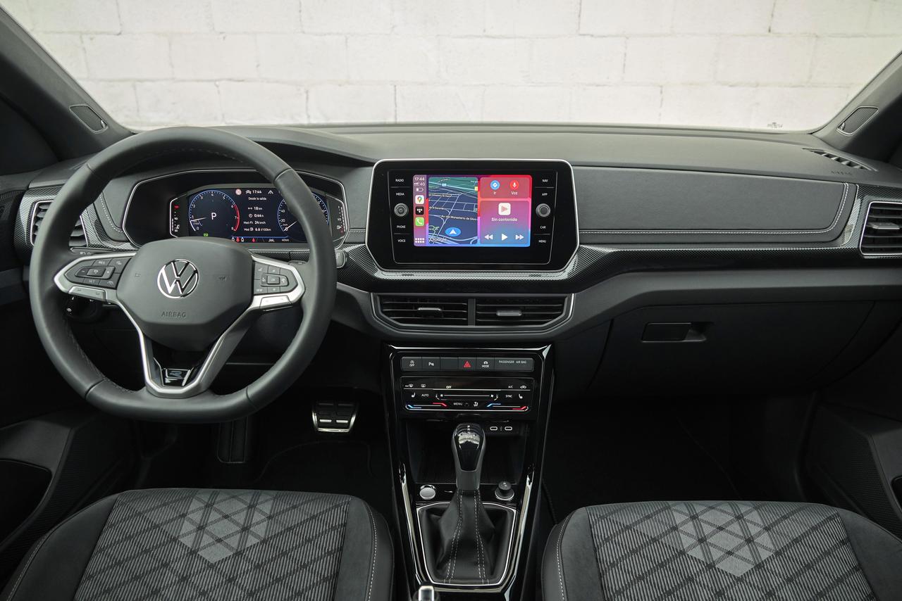 Cuando me subo a bordo del Volkswagen T-Cross 2024, lo primero que noto es que ahora presenta materiales ligeramente más agradables al tacto, con mayor calidad percibida, especialmente en la zona media y alta del interior. Lo siguiente que veo es que el cuadro de mandos ahora es completamente digital, con un tamaño de entre 8 y 9,2 pulgadas en función del acabado.