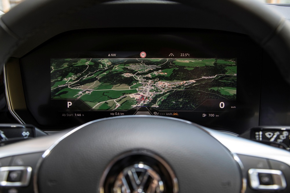 El corazón de este avanzado puesto de conducción es el sistema de información y entretenimiento Discover Premium opcional (Volkswagen ofrece de serie el sistema Discover Pro con una pantalla táctil de 9,2 pulgadas). Este engloba las funciones de sistema de sonido, teléfono, ordenador de a bordo e interfaz para la configuración de diversas funciones del vehículo. El sistema ofrece una memoria interna de 10 GB, dos ranuras para tarjetas SD, una conexión auxiliar y cuatro puertos USB.