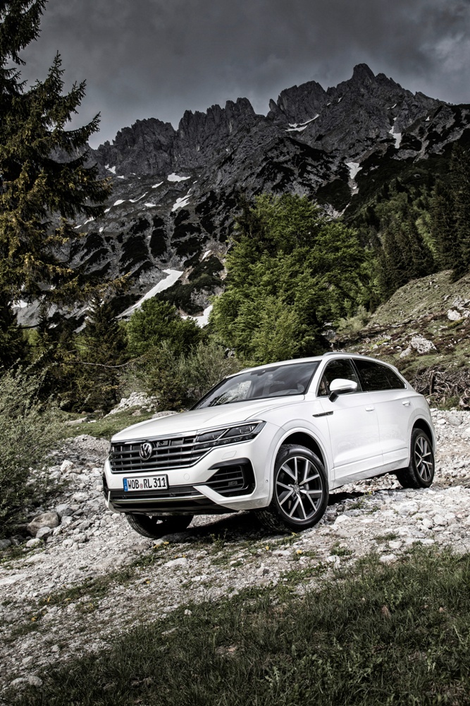 Basado en la plataforma modular longitudinal MLB del Grupo Volkswagen, el nuevo Touareg abarca modelos a partir de la clase media superior con motores y cajas de cambios de instalación longitudinal. Si lo comparamos con su predecesor, la tercera generación es 77 mm más largo (4.878 mm), 44 mm más ancho (1.984 mm) y 7 mm más bajo (1.702 mm), así como 11 mm más de distancia entre ejes (2.904 mm).