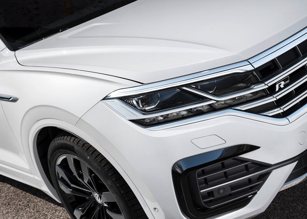 Es robusto y musculoso. El Volkswagen Touareg 2018 es como tendría que ser un SUV.  Es imposible no presenciar un importante avance en materia de diseño inspirado por rasgos que muestran modelos como el Volkswagen Arteon (prueba), del que adopta su frontal, con una parrilla ancha que se une e integra a los faros delanteros coronados por una ancha barra cromada o negro brillante, dependiendo del acabado. El parachoques denota presencia, con entradas de aire anchas en los extremos.