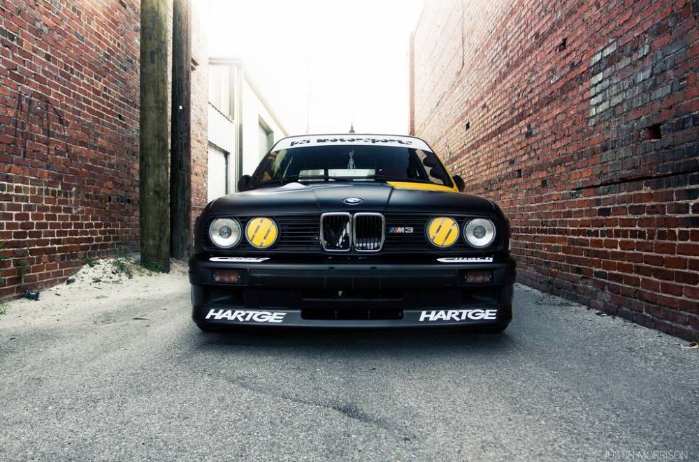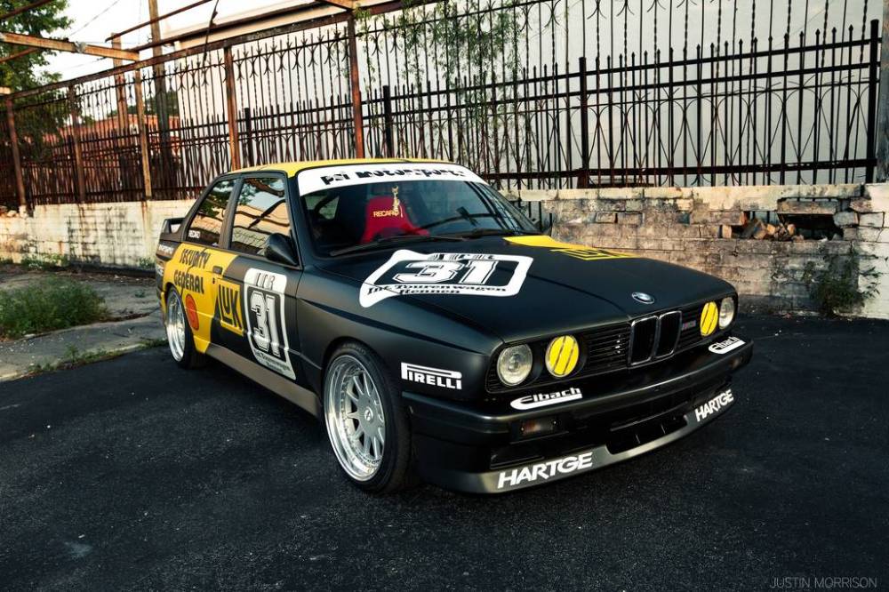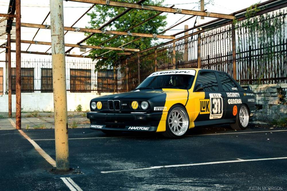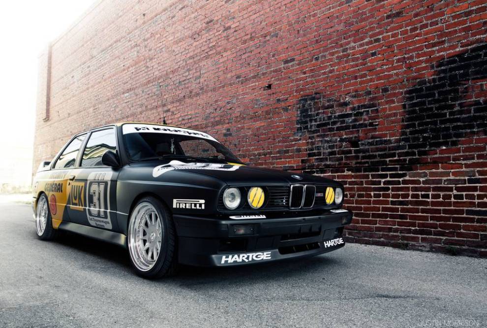 En el apartado exterior se encuentra una pintura en negro mate acompañado de una decoración de competición, la cual incluye líneas transversales en amarillo, multitud de pegatinas de patrocinadores y los números en capó y puertas, todas en blanco. Completando el aspecto racing del BMW M3 e30 DTM del exterior se encuentran unas llantas Hartge de tres piezas y 17 pulgadas en diseño multiradio e inspiración retro. En el habitáculo, los asientos delanteros de este BMW han pasado a estar compuestos de un baquet Recaro de color rojo con cinturones de cinco puntos y una completa jaula de seguridad, indicadores adicionales para controlar el motor en carrera y un volante específico Momo.