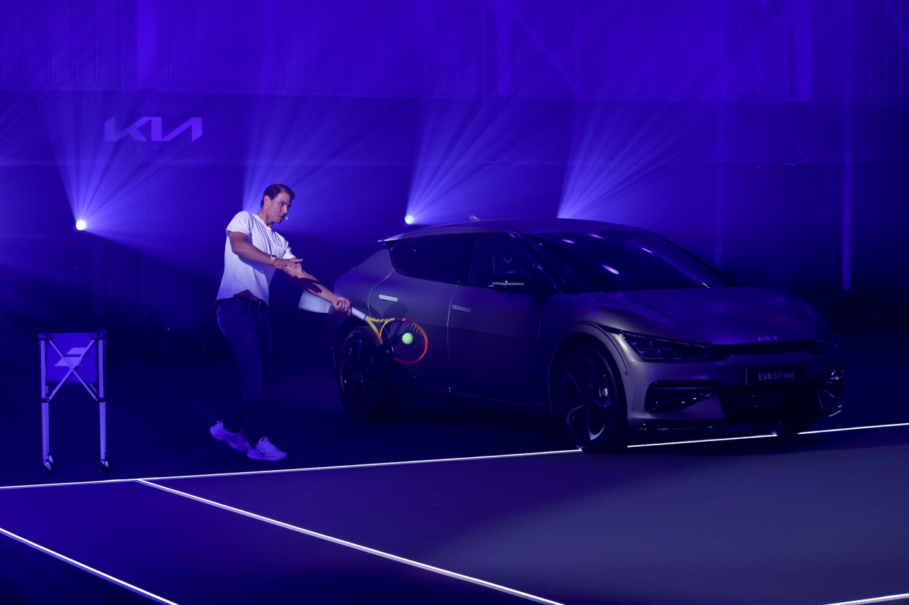 Nadal recibió un EV6 GT-Line personalizado como muestra del objetivo de “crear un mundo mejor y estimular a una nueva generación de conductores para que se incorporen a la movilidad eléctrica”. La ceremonia dio paso al lanzamiento europeo del nuevo KIA EV6, el nuevo vehículo 100% eléctrico de la compañía surcoreana.