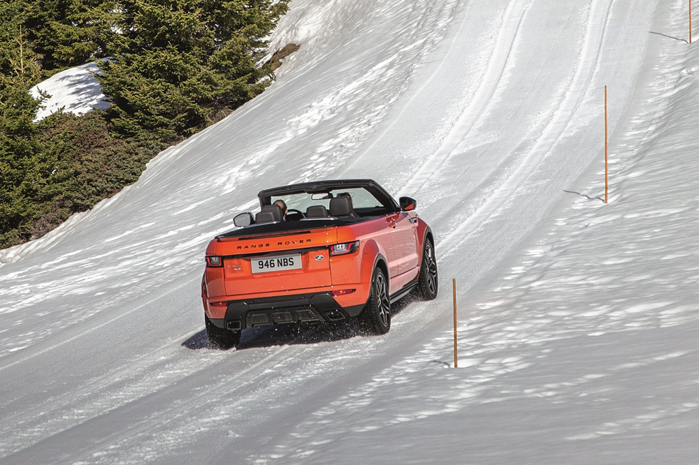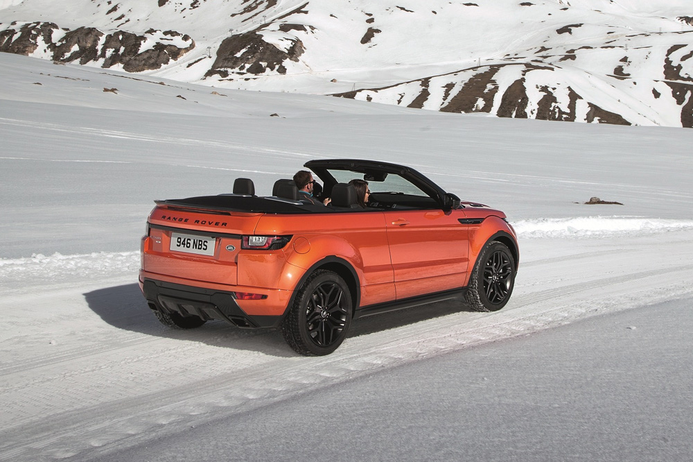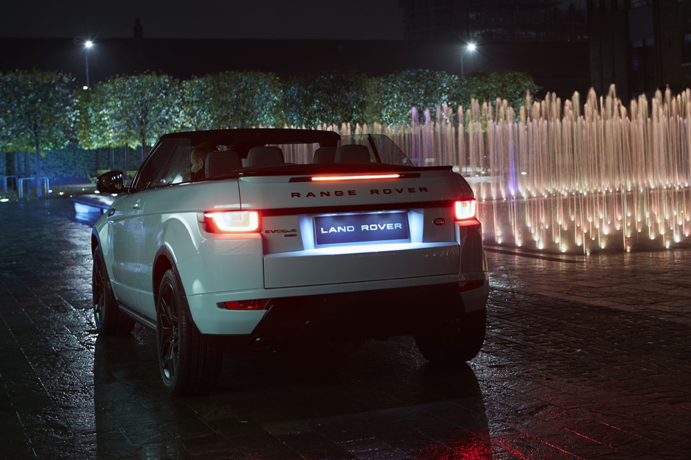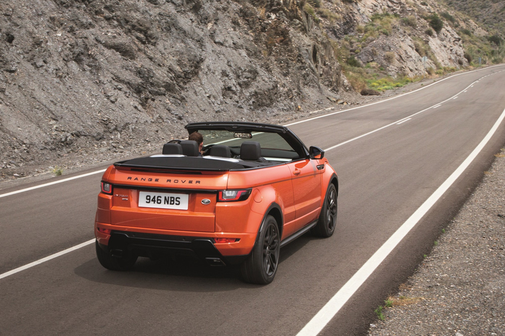 El mecanismo de apertura y cierre del techo del nuevo Range Rover Evoque descapotable se activa desde un botón ubicado en la consola central. Tarda 18 segundos en abrirse y 21 segundos en cerrarse y es capaz de completar dichas operaciones a velocidades de hasta 48 kilómetros por hora. La marca asegura que el nivel de sonoridad que se percibe en el habiáculo con la capota cerrada es como el de los Evoque de techo rígido. En cuanto al maletero, su capacidad se ha visto reducida hasta los 251 litros, es decir, 299 litros que el Evoque coupé, que dispone de un maletero de 555 litros.