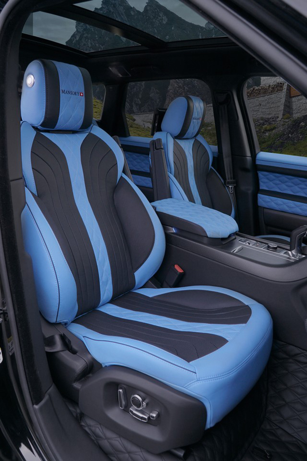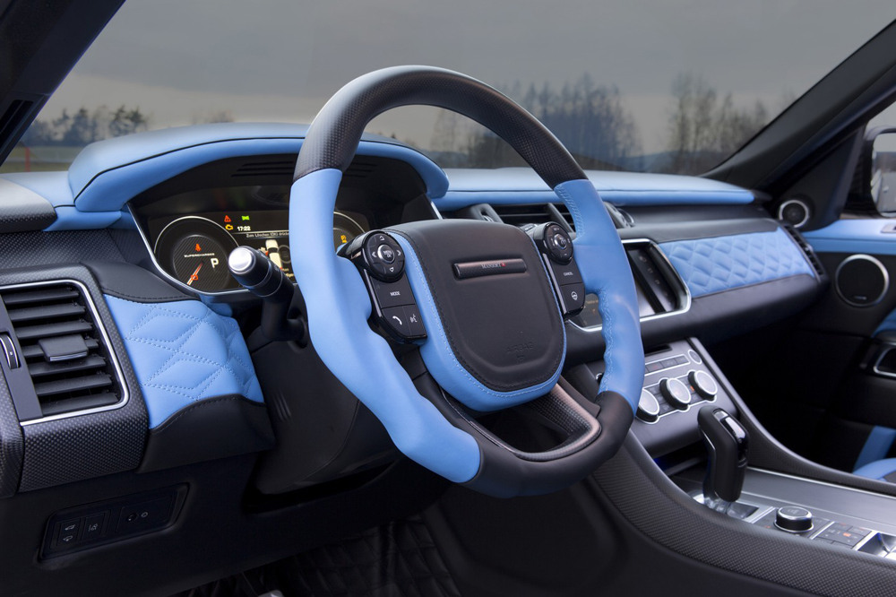 En el habitáculo, cada cliente podrá personalizar los acabados del Range Rover Sport by Mansory a su gusto, pudiendo elegir entre una gran selección de cueros y otros tejidos de alta calidad así como diferentes materiales para los apliques decorativos. En cuanto al motor, Mansory ha desarrollado varios paquetes de potenciación en función de la mecánica que monte. El más potente es que han creado para el 5.0 V8 de gasolina, que puede llegar a entregar 620 CV de potencia, de forma que es más poderoso y veloz que el Range Rover Sport SVR. El diésel 4.4 SDV8 llega hasta los 380 CV de potencia máxima.