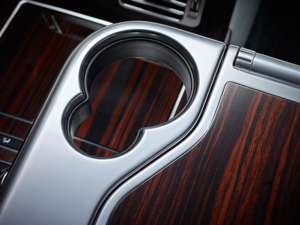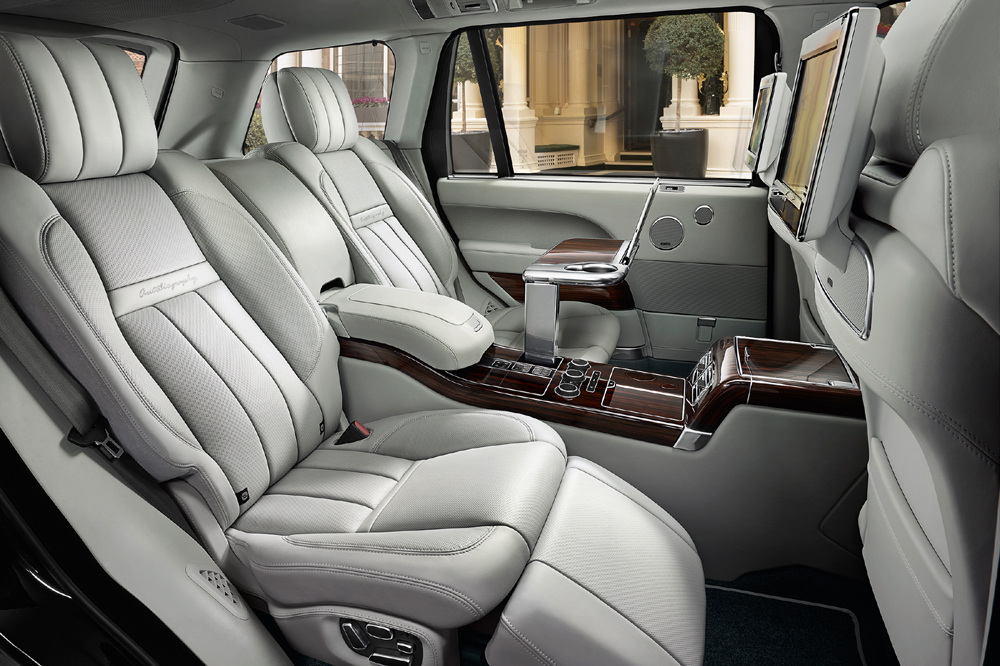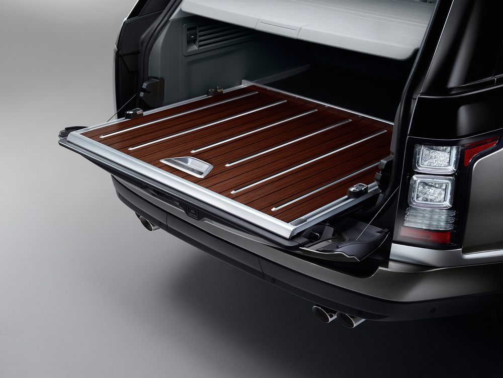 Pero como decíamos, si algo destaca en el Range Rover SVA es su habitáculo. De esta forma, nos encontramos con detalles como unos pedales e interruptores fabricados a partir de un bloque de aluminio mecanizado, una nevera entre los asientos traseros, mesitas plegables eléctricamente o un completo sistema de entretenimiento. Además, se puede complementar con la incorporación de un suelo de carga de madera para el maletero o unos asientos “Event Seating” (“asientos para eventos”) que se colocan sobre la hoja inferior del portón.