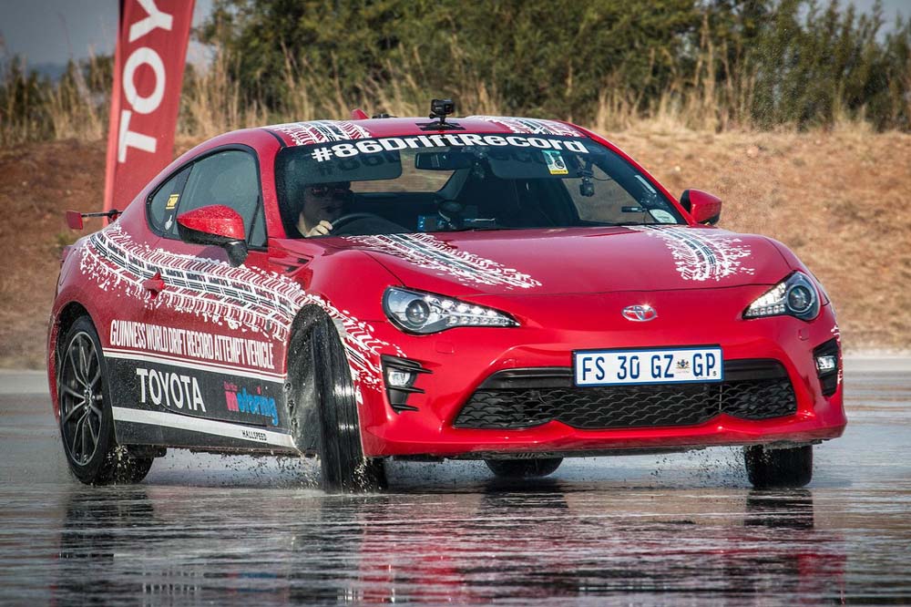 Tras cinco horas y 46 minutos derrapando y tras haber completado casi un millar de vueltas alrededor de la pista deslizante, acumulando en el proceso más de 165 kilómetros de distancia, el periodista sudafricano Jesse Adams ha establecido un nuevo récord al drift más largo con un Toyota GT86. La marca todavía tiene que ser confirmada por la organización de los récords Guinness para considerarse oficial, pero según los datos preliminares, Jesse ha superado el anterior registro.