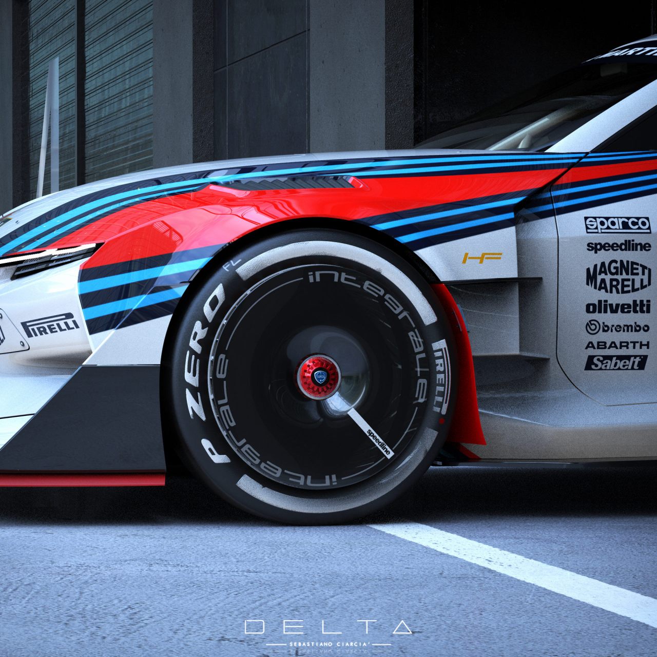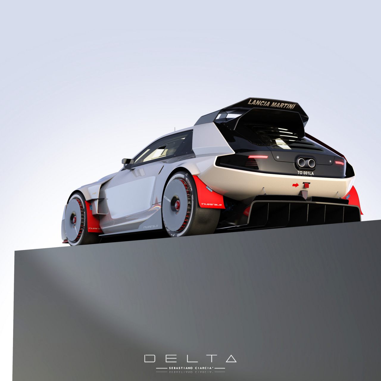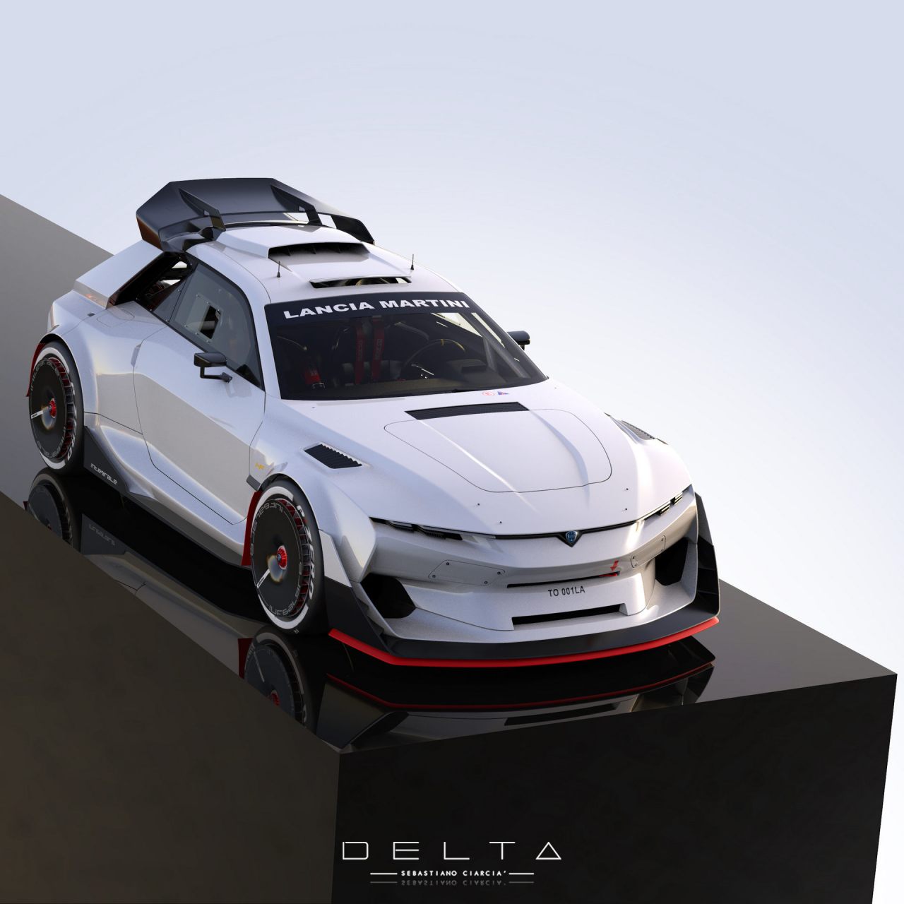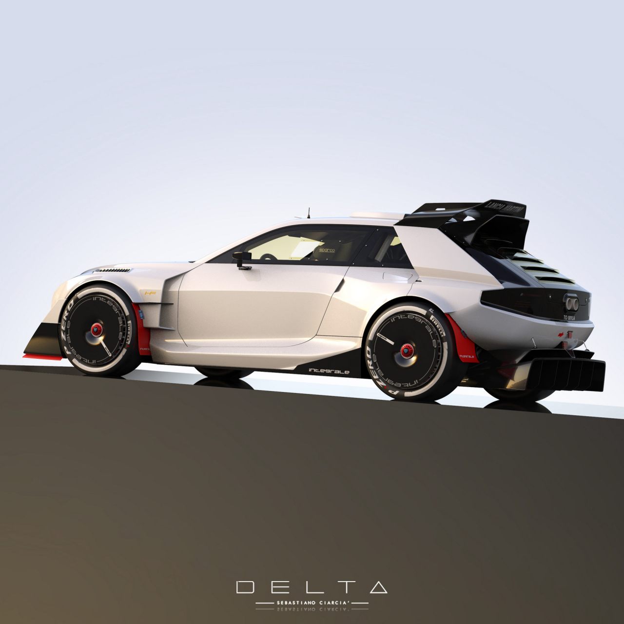 Su trabajo es bastante impresionante. La reinterpretación moderna del Lancia Delta presenta un frontal con faros muy estrechos y afilados, un parachoques esculpido y grandes tomas de aire. El capó también presenta pliegues marcados y una salida de aire. En su versión de calle, el vehículo tiene llantas multirradio y unos marcados pasos de rueda traseros que se conectan con unos pilotos retro, tubos de escape dobles y un llamativo difusor.