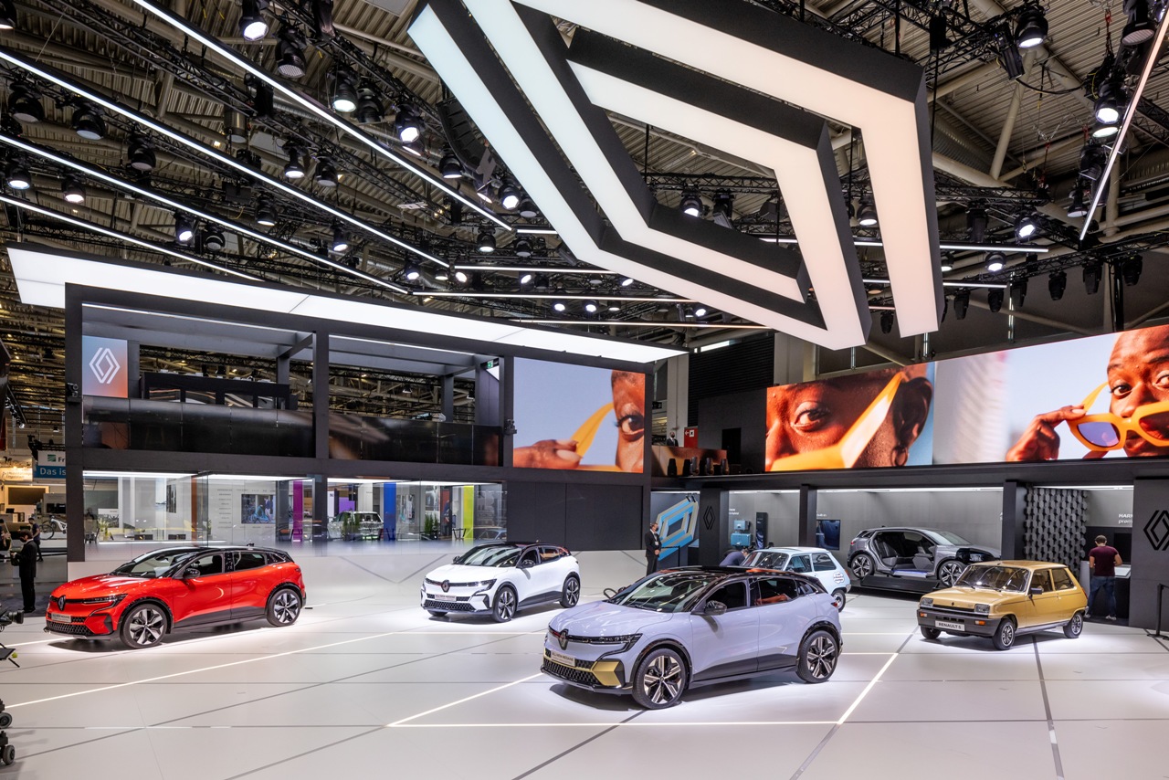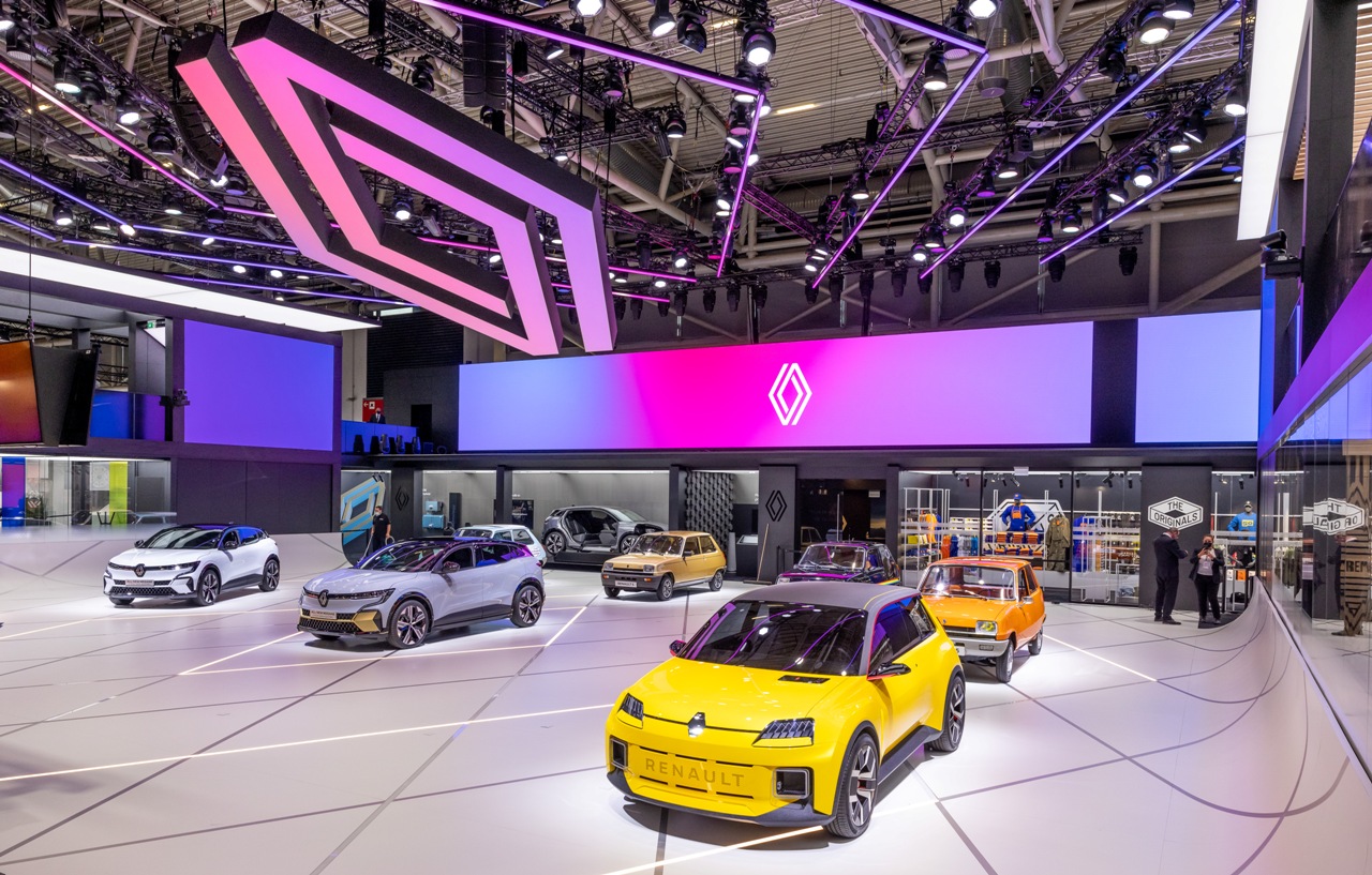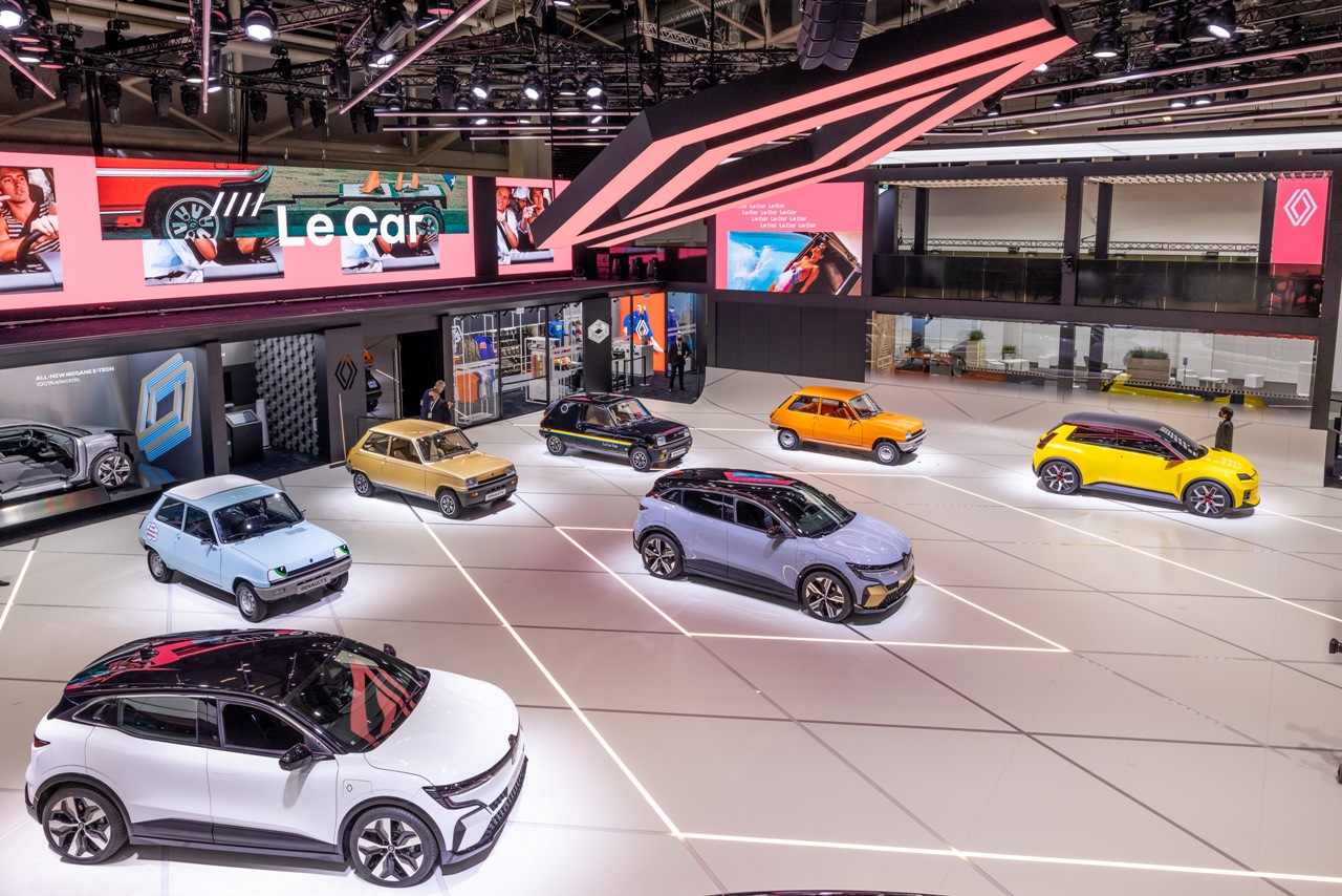 Con motivo del inminente 50º aniversario del R5, Renault ha expuesto cuatro de los modelos más icónicos del pequeño utilitario. En Múnich se expone una versión TL naranja, un Le Car Van negro, un Eléctrico azul y un TX de color Champán. Esta es una forma perfecta de mirar al futuro sin olvidar el pasado de un modelo tan transcendental para la marca y para el público como lo fue en su día el Renault 5. El stand de la compañía en el Salón de Múnich también tiene como protagonista al nuevo Renault Mégane E-TECH Eléctric 2022.
