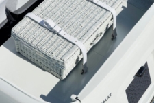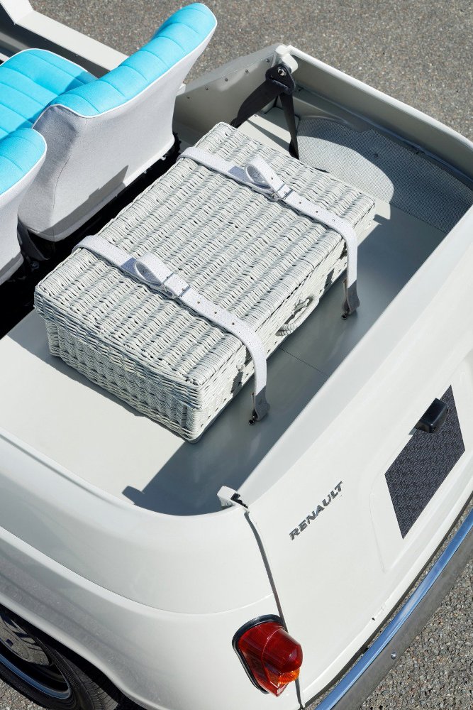 El diseño está claramente inspirado por el Renault 4L original, donde ha sido integrada una parrilla de color blanca a medida, sin aberturas para la refrigeración al equipar un sistema de propulsión eléctrico. Se han eliminado las puertas, el techo, los pilares y las ventanas, a excepción de la luneta delantera inclinada. Los asientos están tapizados en un llamativo tono azul eléctrico, y en la sección posterior se ha equipado una cesta de mimbre que sirve como portaobjetos y se asegura al chasis mediante dos correas de cuero blanco.