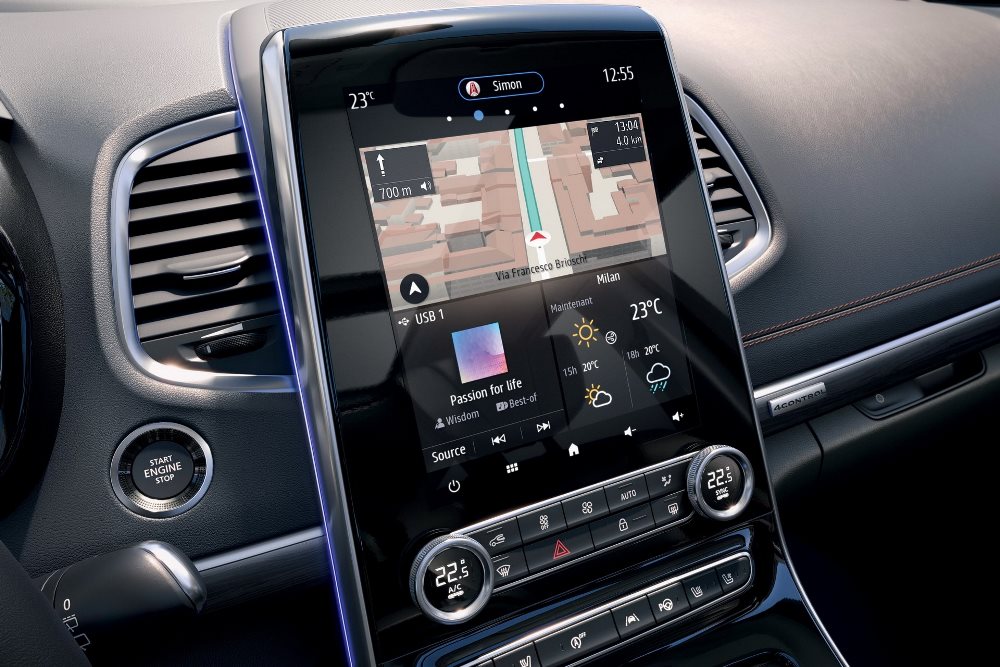 El restyling del Espace introduce cambios notables en el habitáculo, con una consola central flotante rediseñada que integra un área de almacenaje nueva con dos portavasos y una pareja de puertos USB. Por otro lado, el sistema de infoentretenimiento ha sido actualizado a la última generación del Easy Connect con pantalla táctil de 9,3 pulgadas y compatibilidad con Android Auto y Apple CarPlay. La última de las novedades es el cockpit totalmente digital de 10,2 pulgadas con gráficos 3D para el navegador.