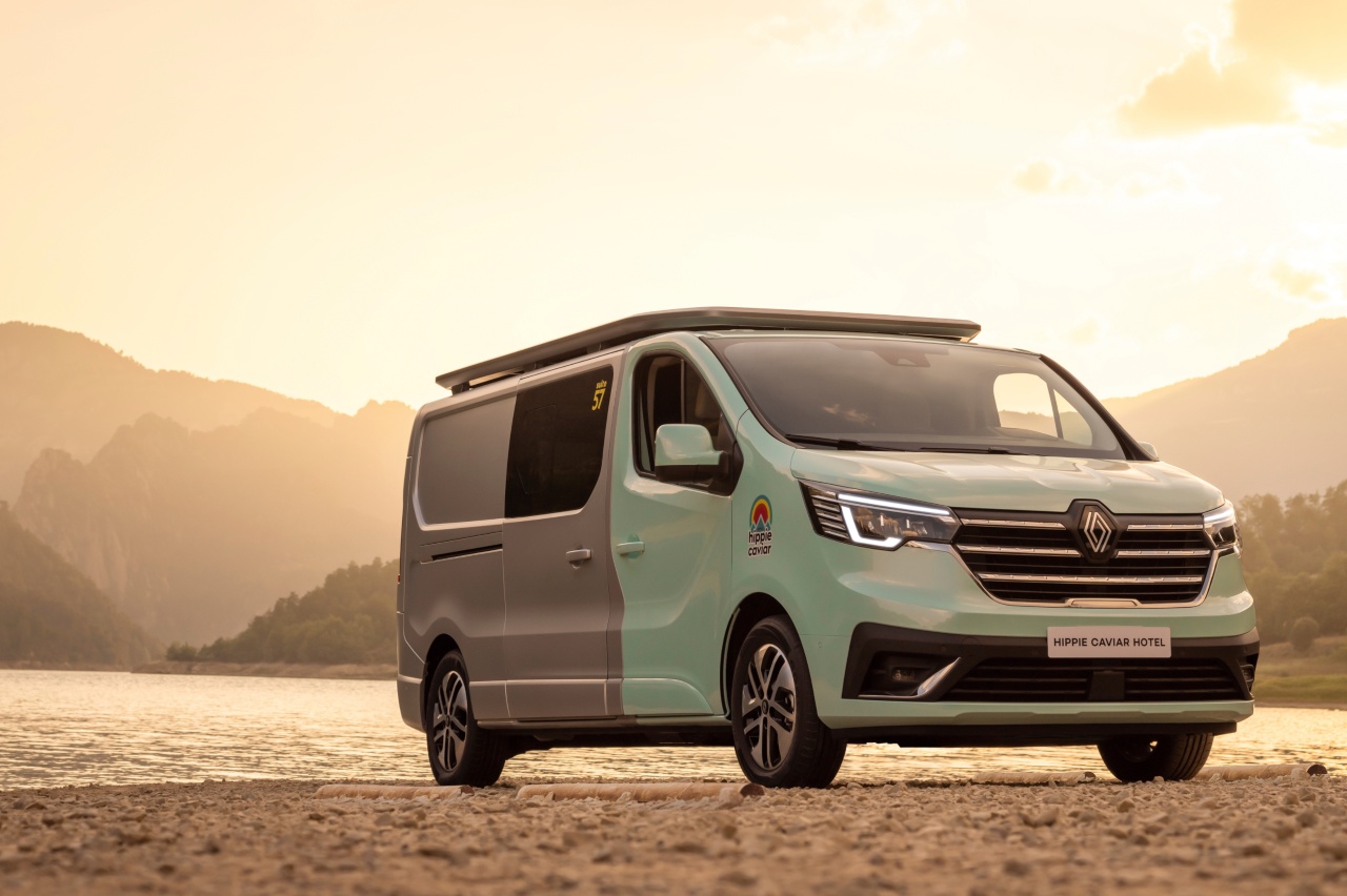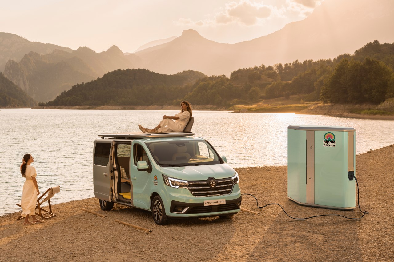 Algunos prototipos son para ensayar ideas que luego se trasladarán a la producción, y otros, para soñar con el futuro y crear cosas radicalmente nuevas. El Renault Hippie Caviar Hotel es más bien de estos últimos. Desvelado estos días, justo antes de que se presente en el Düsseldorf Caravan Salon, lo que hace es mezclar dos mundos hoy muy de moda, pero separados: las autocaravanas y los resorts de lujo con espíritu natural y ecológico.