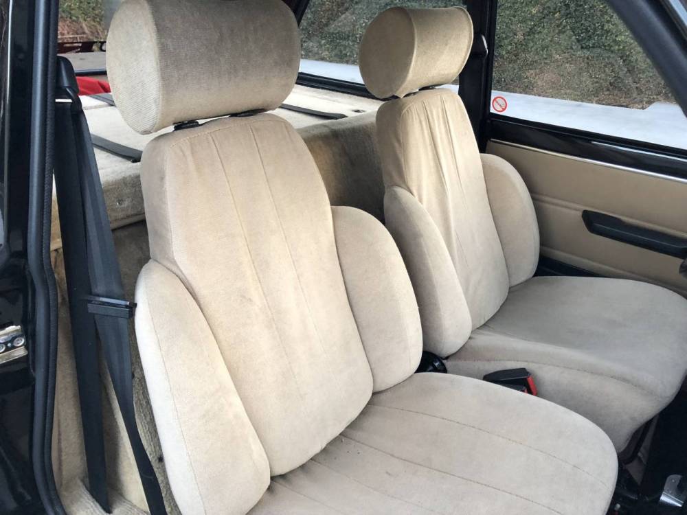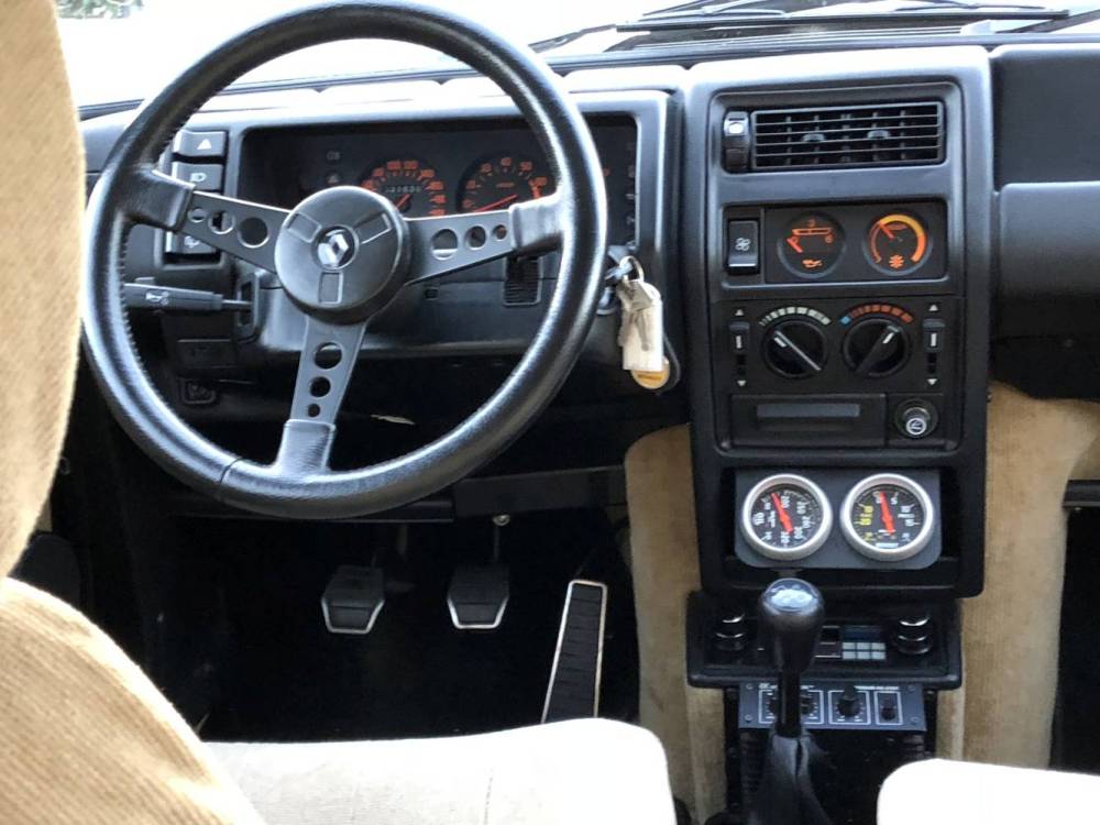 Según el anterior propietario, el Renault R5 Turbo 2 Evo cuenta con llantas de aleación originales de Renault y está cubiertas con neumáticos Michelin TRX de época. El interior, mientras tanto, combina tela marrón en los asientos, con unas alfombrillas en negro donde se puede leer ‘Turbo 2’, un volante Iso Delta original y dos indicadores de presión de turbo y aceite del mercado de accesorios que han sido instalados en la consola central.