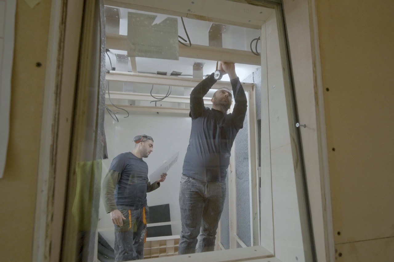 Se optó por uno de los vehículos comerciales de la marca que más espacio ofrecen, un Renault Master, que tiene un espacio de carga de 3.733 mm de largo, 1.765 mm de ancho y 2.048 mm de alto. Se trata de un volumen considerable, pero que puede ser justo si se tiene en cuenta que en él había que habilitar dos estancias separadas, la zona de grabación y el estudio.