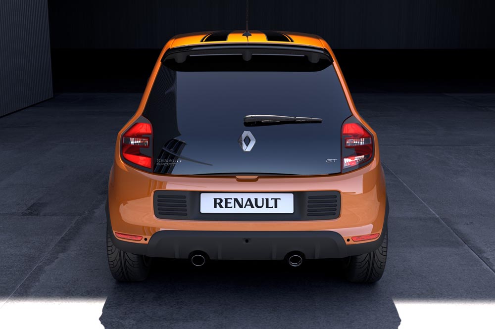 El nuevo Twingo GT, que será presentado por primera vez en el Goodwood Festival of Speed 2016, cita que se desarrollará en Inglaterra entre el 23 y el 26 de junio, tiene una apariencia similar a la del Renault Twin’run Concept. Solo hay que echar un vistazo al diseño de sus llantas de 17" o al el stripping NACA. Presenta un nuevo paragolpes trasero con doble salida de escape, toma de aire lateral y altura de la carrocería rebajada. La gama de colores la componen cuatro: Naranja Pimienta, Gris Lunar, Negro Profundo y Blanco Glaciar. Por su parte, el interior recibe toques naranja, embellecedores en los umbrales de puerta con la palabra Renault Sport, pedalier de aluminio y pomo de zamac.