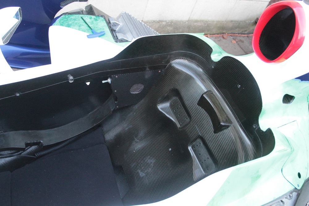 Este motor H1V8 está compuesto por dos bloques de 1,5 litros sobrealimentados con cuatro cilindros cada uno procedentes de la Suzuki Hayabusa. Puede que la cifra final de 500 CV queden algo escasos en comparación con los 750 CV originales, pero dado el peso del vehículo, son suficientes para ruborizar a más de uno en pista. El proyecto está inacabado dado que los propietarios andan algo escasos de fondos, pero todo llegará.
