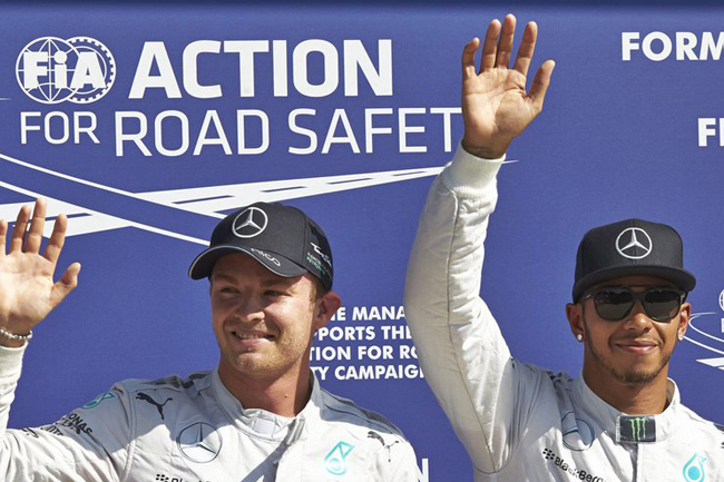 Hamilton llegó a la meta del Gran Premio de Italia en Monza con una ventaja de 3,1 segundos respecto a su compañero de equipo, el alemán Nico Rosberg. El piloto brasileño de Williams, Felipe Massa, llegó en tercera posición a 25 segundos del líder, mientras que su compañero de equipo, Valtteri Bottas, llegó en cuarta posición.