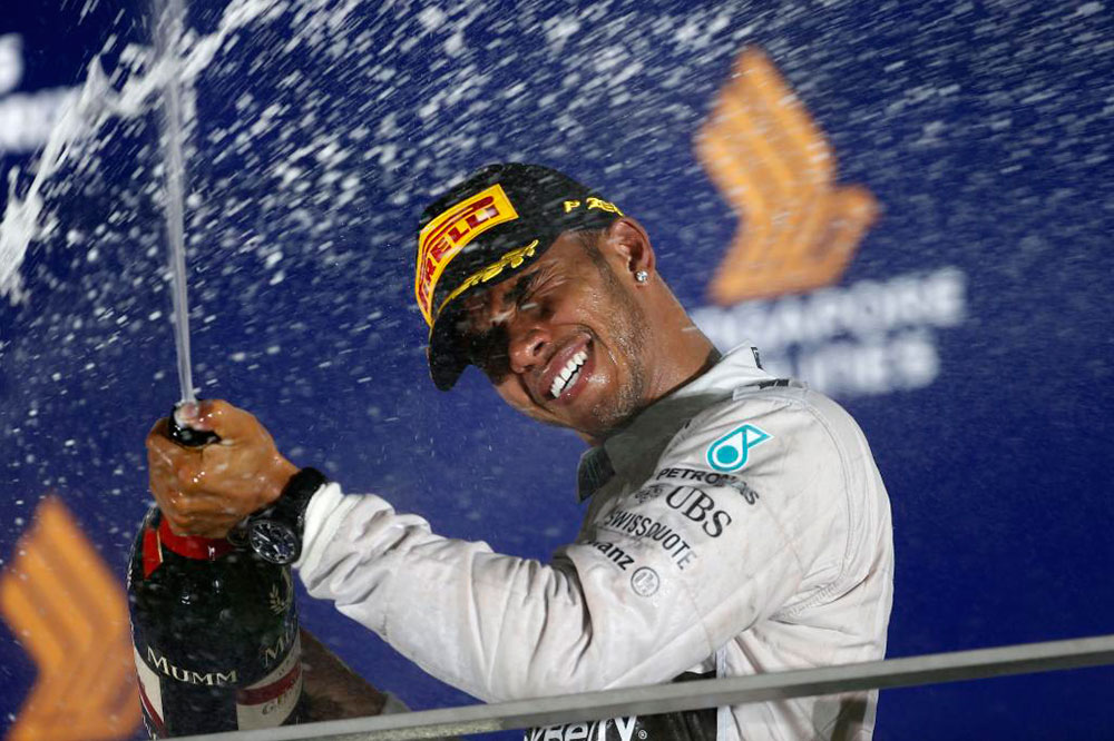 A falta de cinco pruebas para el final del campeonato, y tras su victoria en Marina Bay, Lewis Hamilton lidera con 241 puntos la clasificación general, tres más que Rosberg, y eso a pesar de llegar a esta carrera nocturna con 22 puntos menos que el alemán.