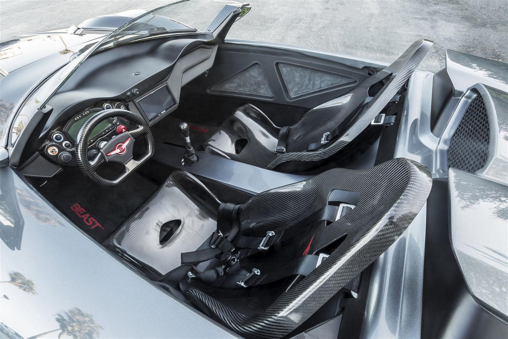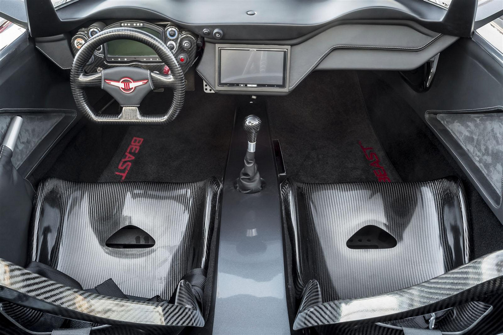 El nuevo Beast X, como decíamos, es una edición especial con una producción limitada a tan solo cinco unidades para todo el planeta. Cada uno de esos cinco coches será considerablemente más potente que el Beast convencional, pues equipan un propulsor de origen Honda de cuatro cilindros en línea con 2.4 litros de capacidad altamente modificado. Han reforzado los componentes internos, han añadido dos turbocompresores Borg Warner y un generoso intercooler y ahora entrega 700 CV de potencia a 7.350 revoluciones por minuto, es decir, es 200 CV más potente que el modelo normal -que a su vez es otros 200 CV más potente que el Ariel Atom en el que está basado-.