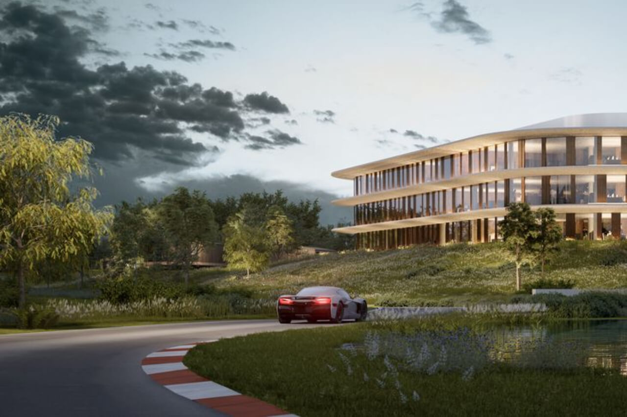 La nueva sede de Rimac está siendo diseñada por la firma croata 3LHD y se ha puesto especial énfasis en mezclar la arquitectura con el entorno. Se trata de un enorme campus de 200.000 metros cuadrados ubicado en las afueras de Zagreb, que contará con líneas de producción, instalaciones I+D y una pista de pruebas. No obstante se ha querido tener muy en cuenta a los 2.500 empleados.