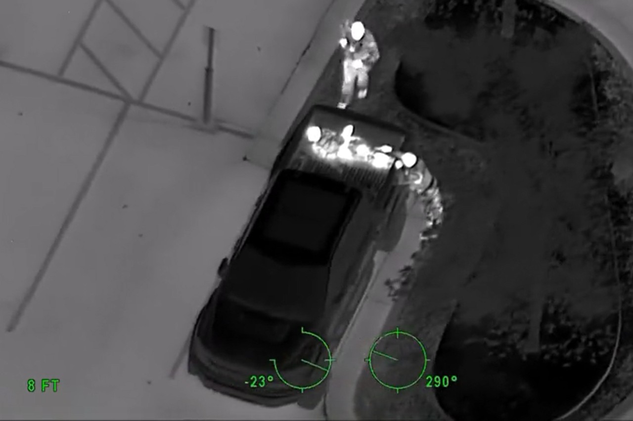 El sospechoso pensó que sería un buen escondite la cama de un Ford F-150 Raptor, aprovechando la oscuridad de la noche y la altura del vehículo, una combinación que podría parecer perfecta, aparentemente. Pero el supuesto ladrón no cayó en que el helicóptero de la policía tenía cámaras térmicas que detectan el calor humano.