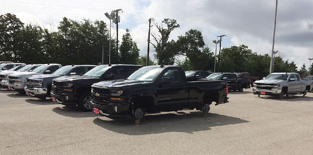 El Departamento de Policía de Tyler, en Texas (EE.UU.), está investigando el robo de las llantas de 48 coches por valor de más de 200.000 euros que se produjo la semana pasada. El asalto se produjo en la madrugada del pasado domingo, cuando un número desconocido de individuos entró a la fuerza en el aparcamiento de un concesionario Chevrolet de vehículos nuevos y, durante unas cuatro horas, sustrajeron las llantas y los neumáticos de más de cuatro decenas de coches a estrenar.