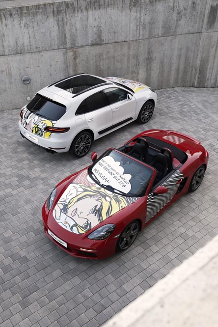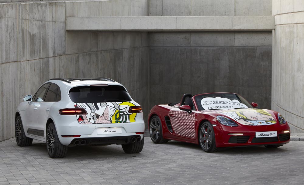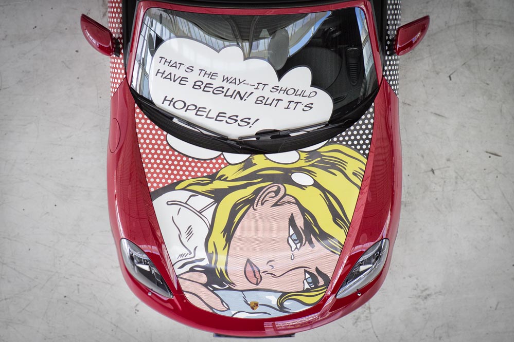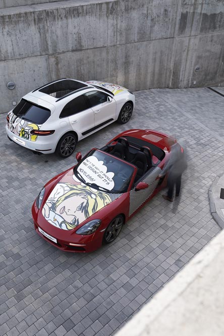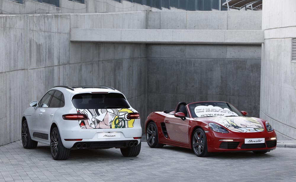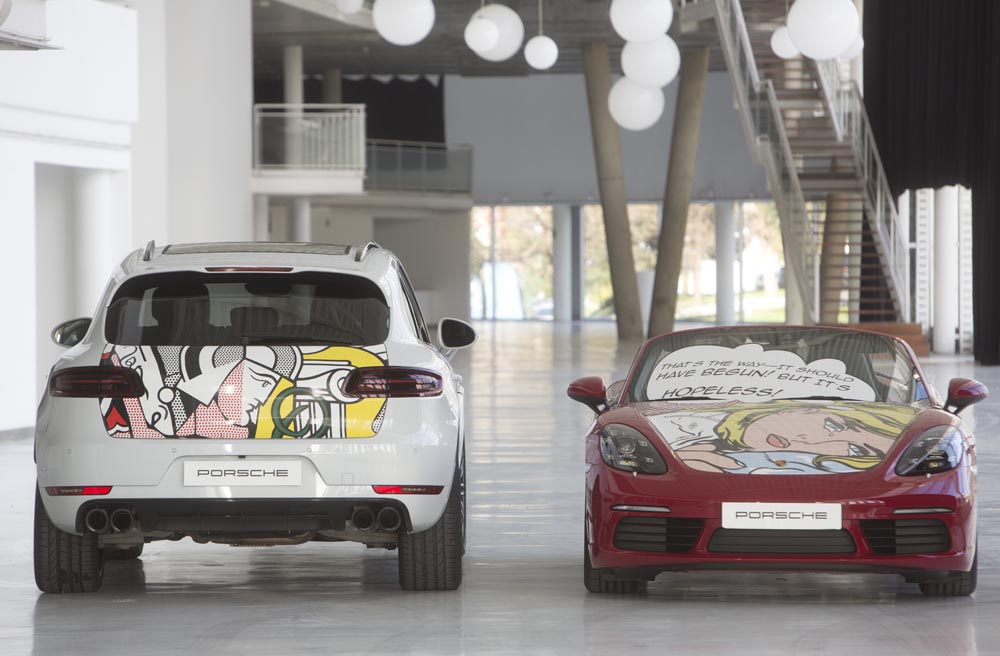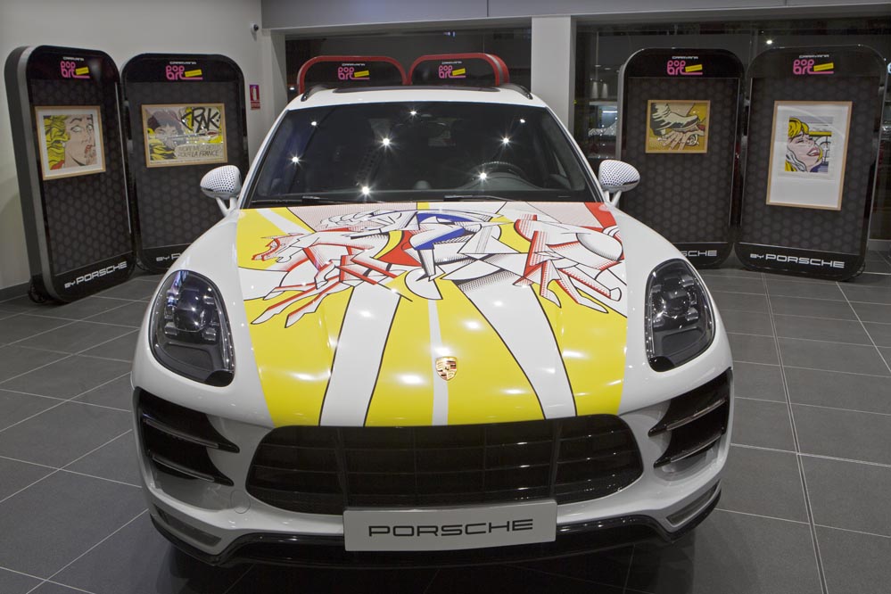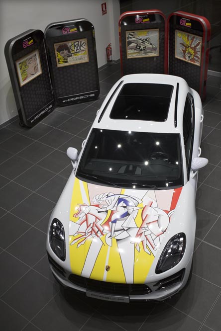 “Si algo tiene que tener color, tiene que ser rojo”. Por eso mismo, está tonalidad es la encargada de bañar la carrocería de uno de los dos Porsche de la exposición, la del 718 Boxster. Como era de esperar, los dos acogen obras del artista; el descapotable exhibe “Hopeless”, de 1963; y el Macan, que también hace de ‘lienzo’, “Red Horseman”, de 1974. Además de los puntos benday, de lo que presumen los dos automóviles, también el SUV recoge en la zaga el póster “The Solomon R”, obra que toma el Museo Guggenheim como sello.