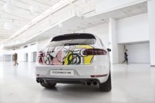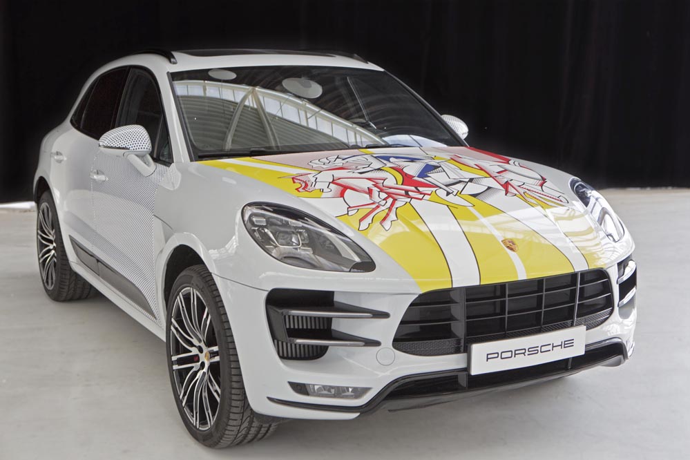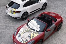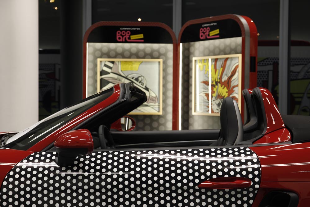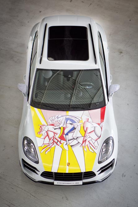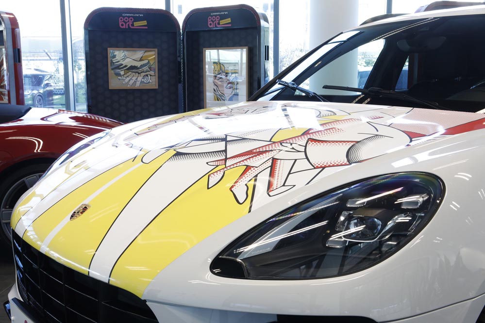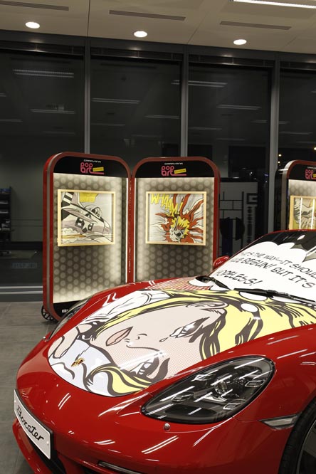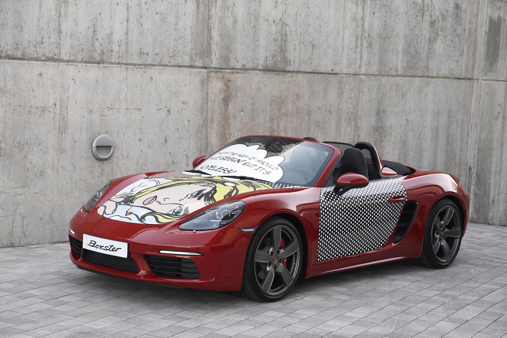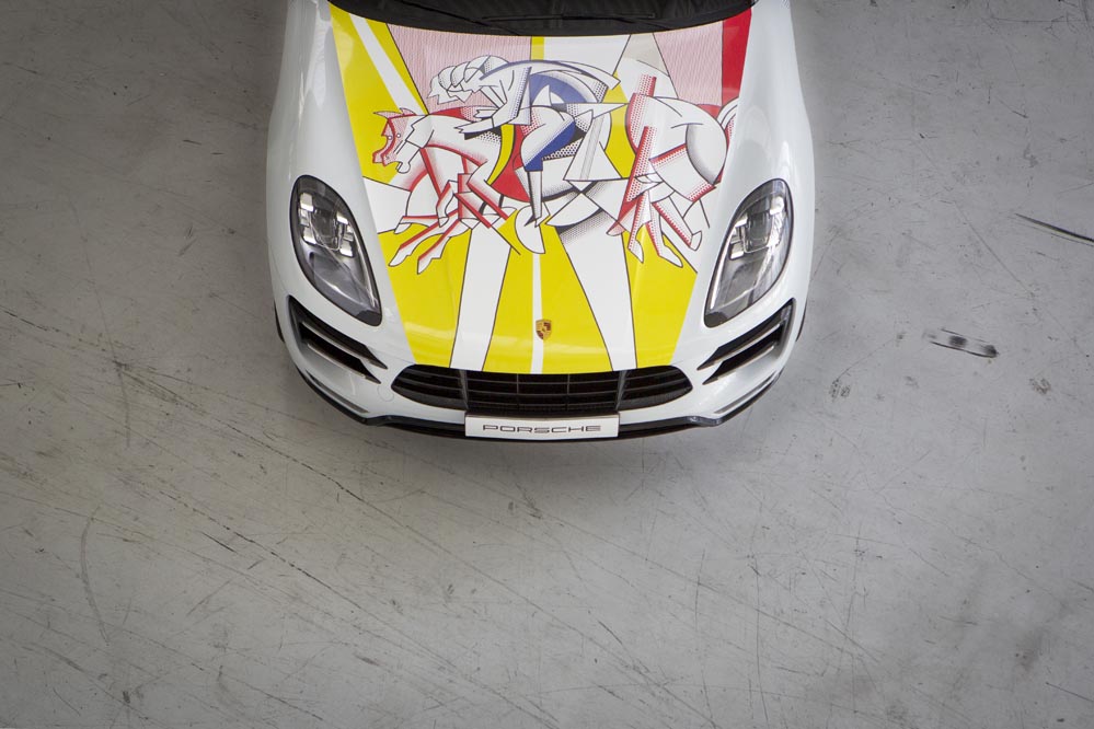 “Si algo tiene que tener color, tiene que ser rojo”. Por eso mismo, está tonalidad es la encargada de bañar la carrocería de uno de los dos Porsche de la exposición, la del 718 Boxster. Como era de esperar, los dos acogen obras del artista; el descapotable exhibe “Hopeless”, de 1963; y el Macan, que también hace de ‘lienzo’, “Red Horseman”, de 1974. Además de los puntos benday, de lo que presumen los dos automóviles, también el SUV recoge en la zaga el póster “The Solomon R”, obra que toma el Museo Guggenheim como sello.